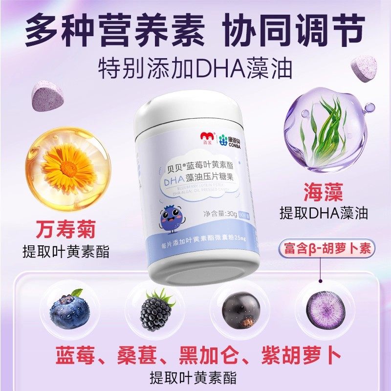康恩贝蓝莓叶黄素酯DHA藻油非软糖儿童学生青少年正品官方旗舰店