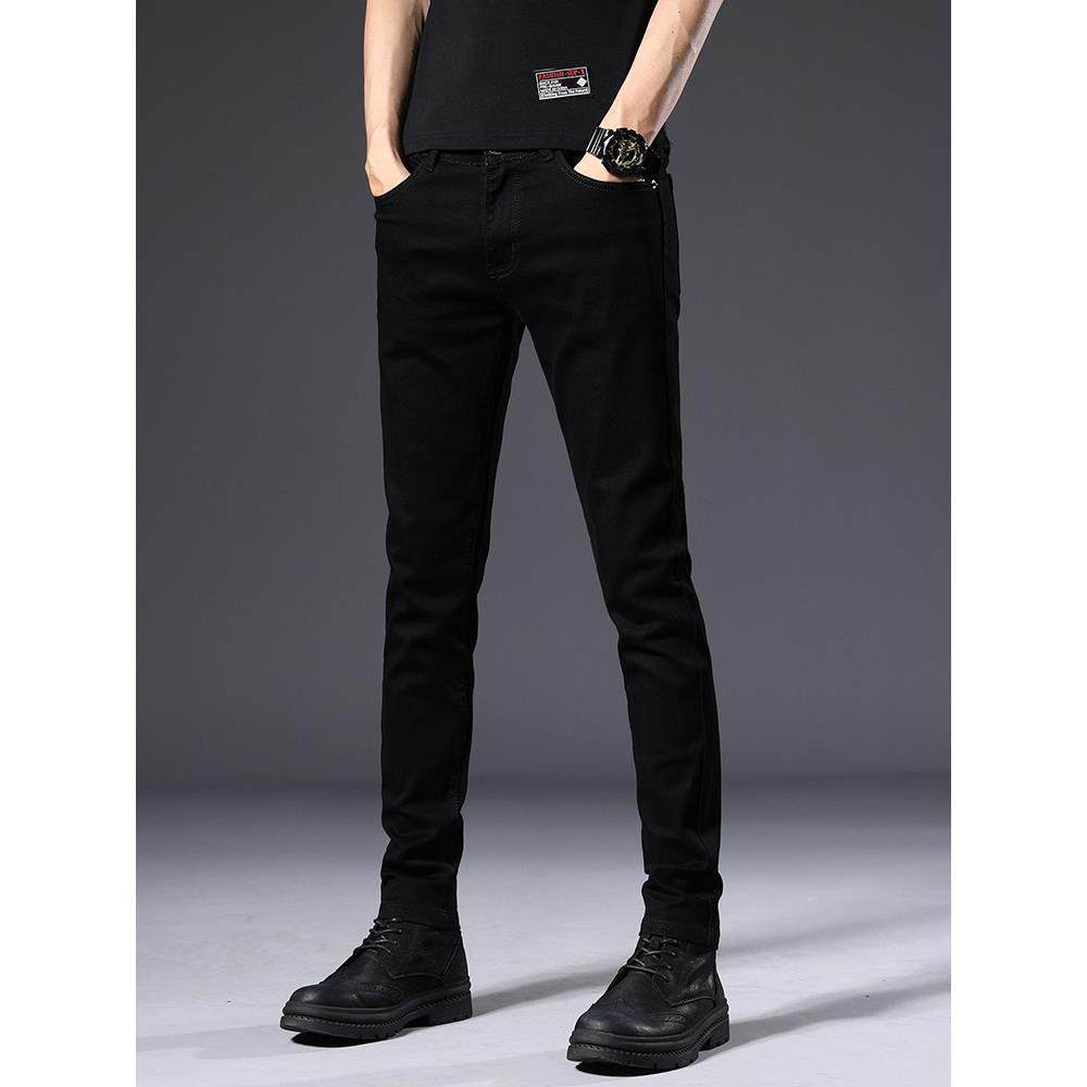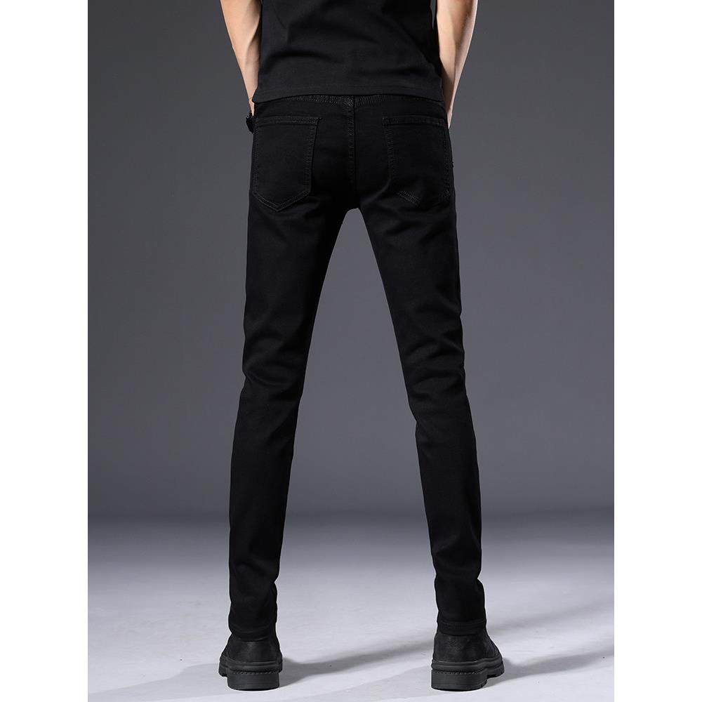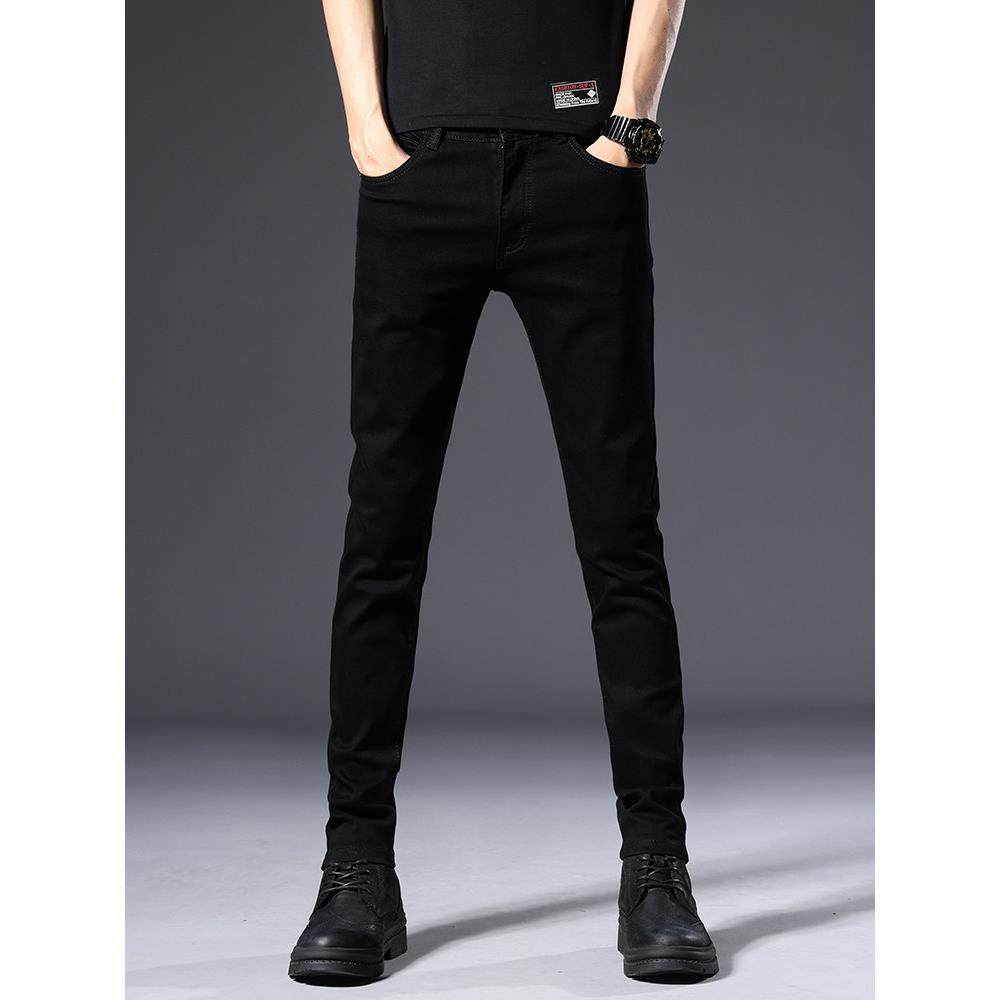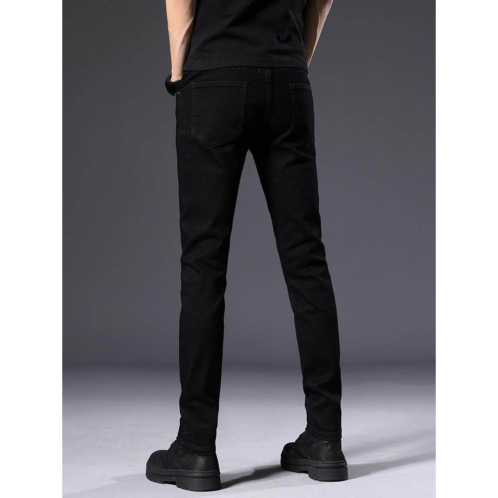 秋季纯黑色高端牛仔裤男2025秋冬款加绒韩版潮流修身小脚休闲长裤