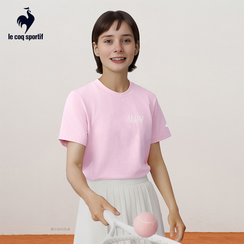 乐卡克法国公鸡2025新款夏女士正肩运动短袖纯棉透气圆领印花T恤