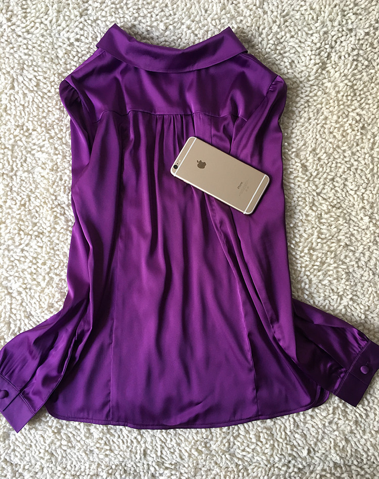 春秋新款紫色修身风桑蚕丝上衣