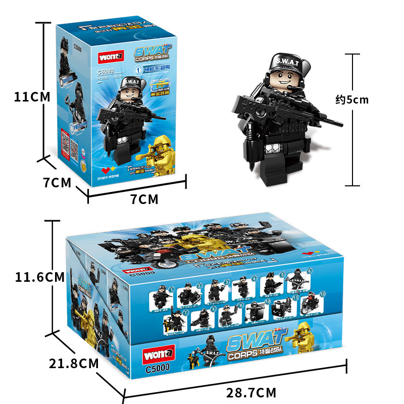 沃马积木特警战队军事人仔特种兵武器男孩益智拼装警察玩具C5000