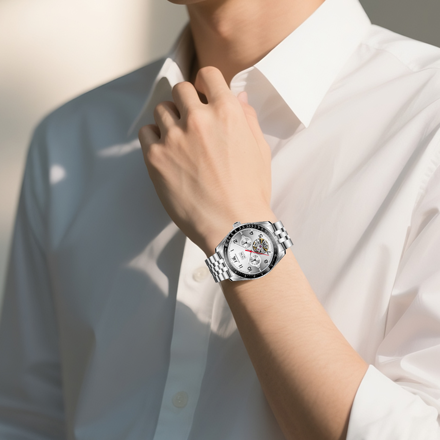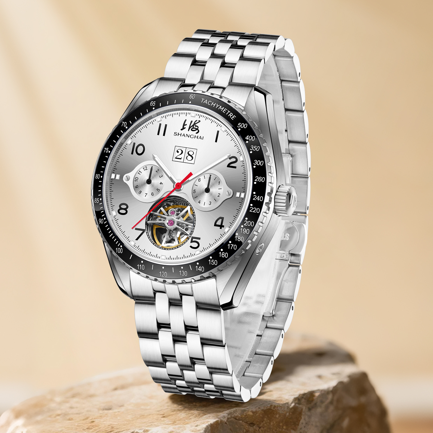 上海手表风驰系列黑白熊猫陶瓷圈多功能自动机械表男夜光防水6021