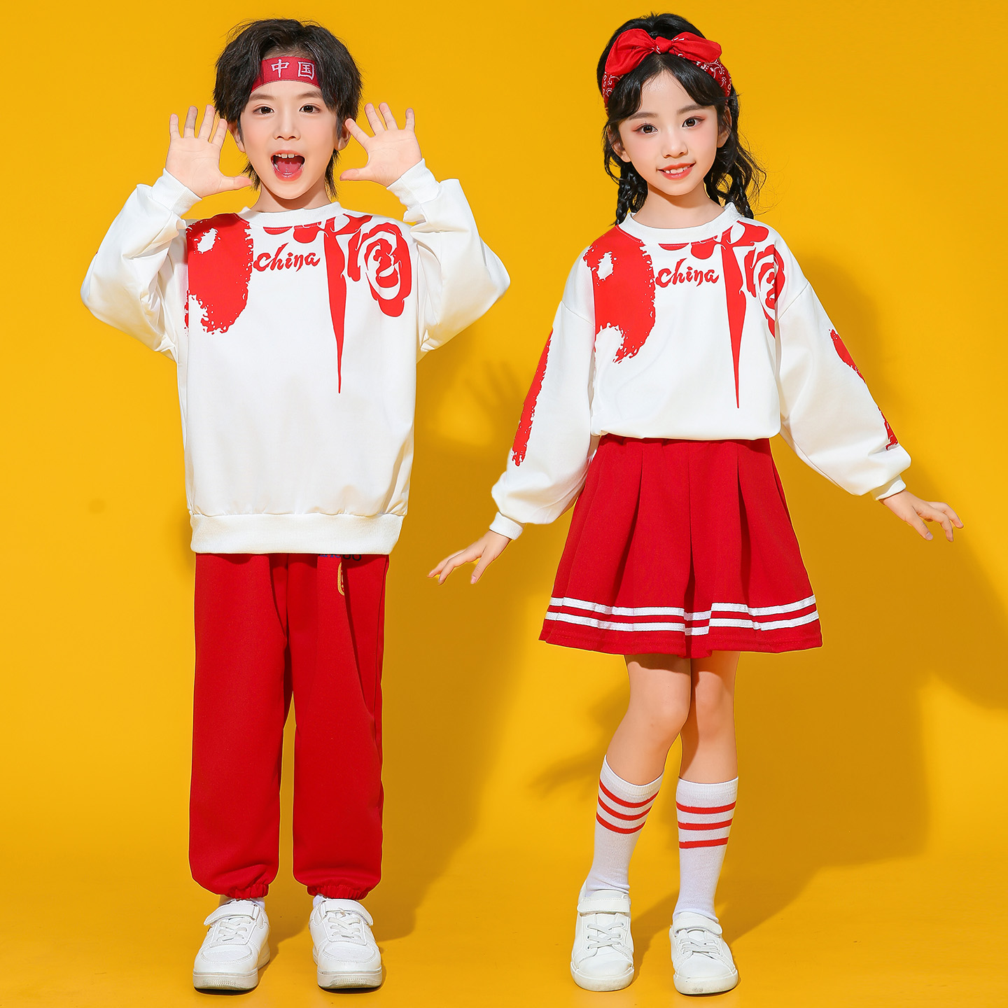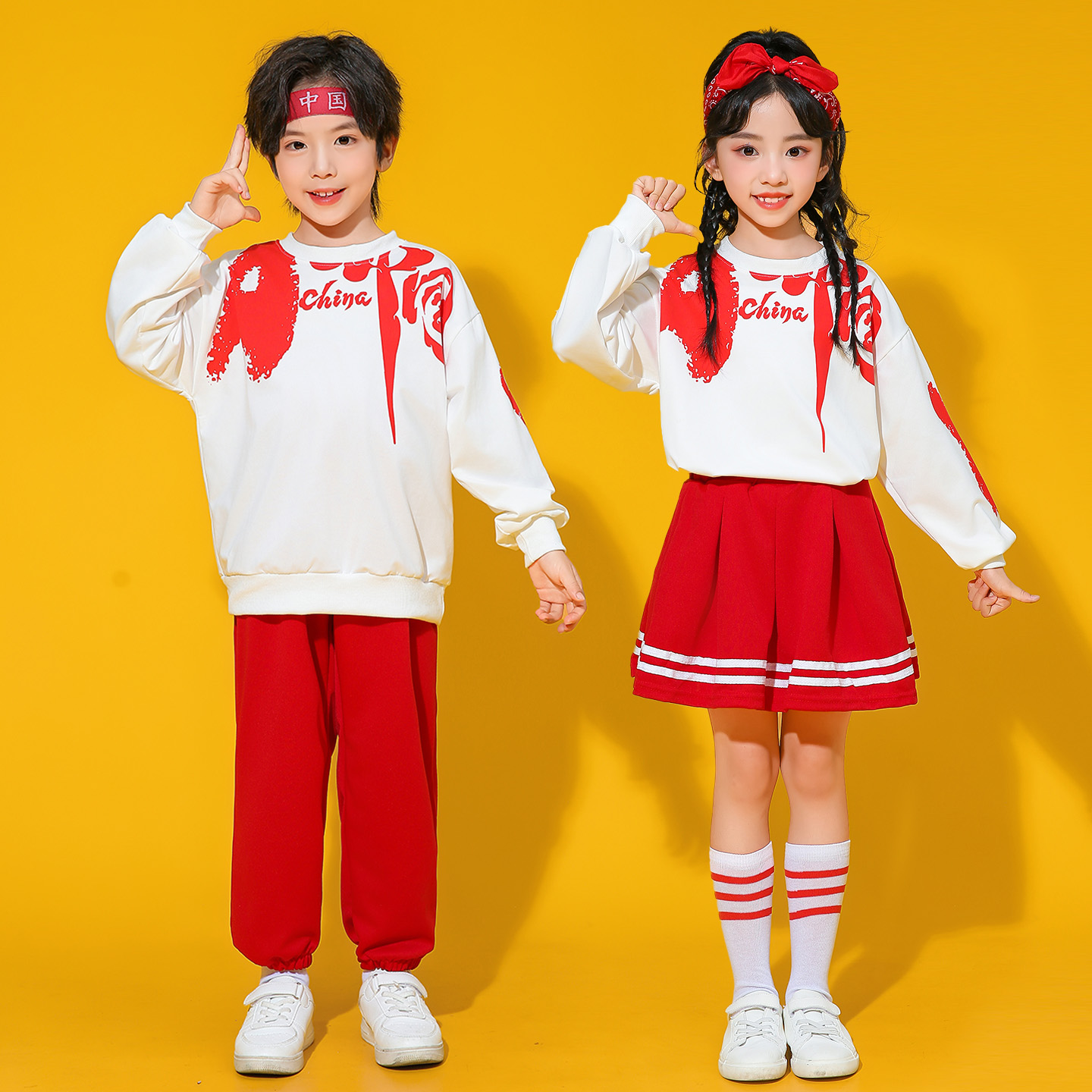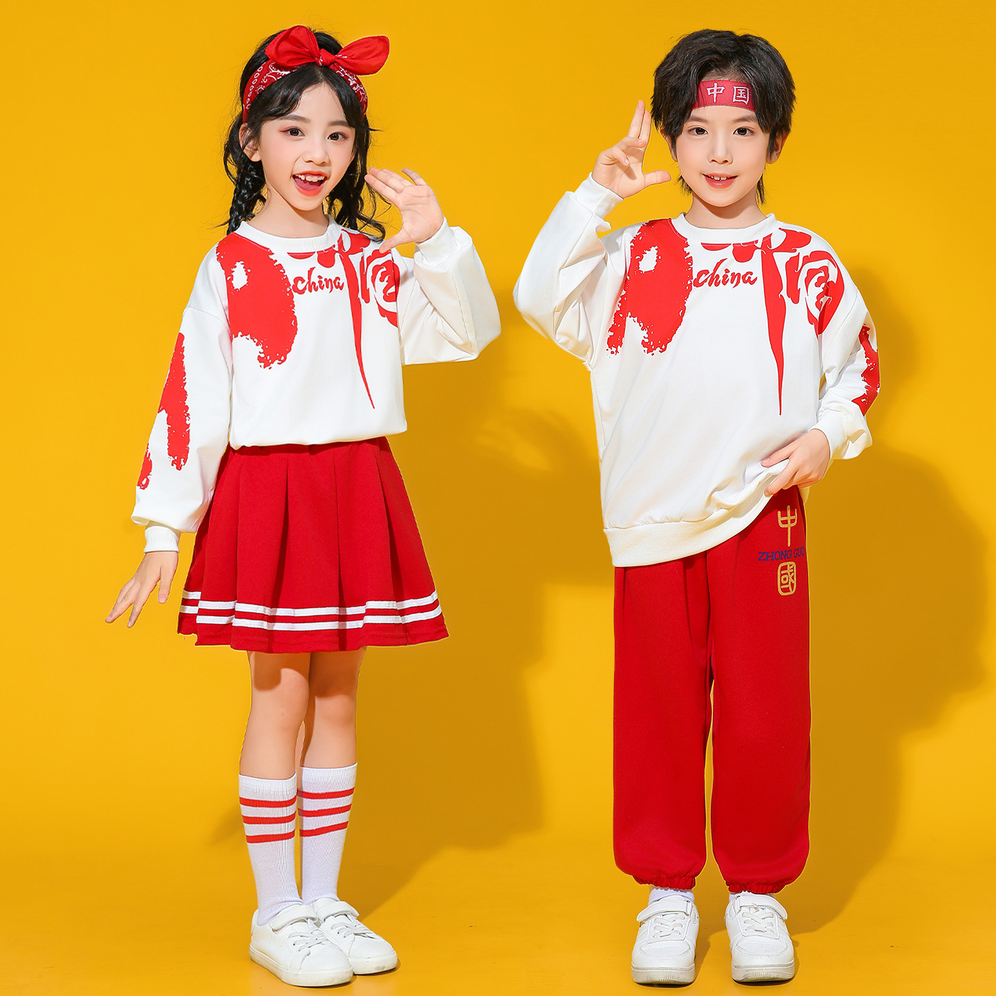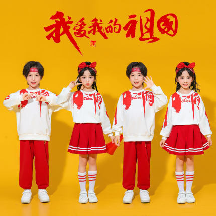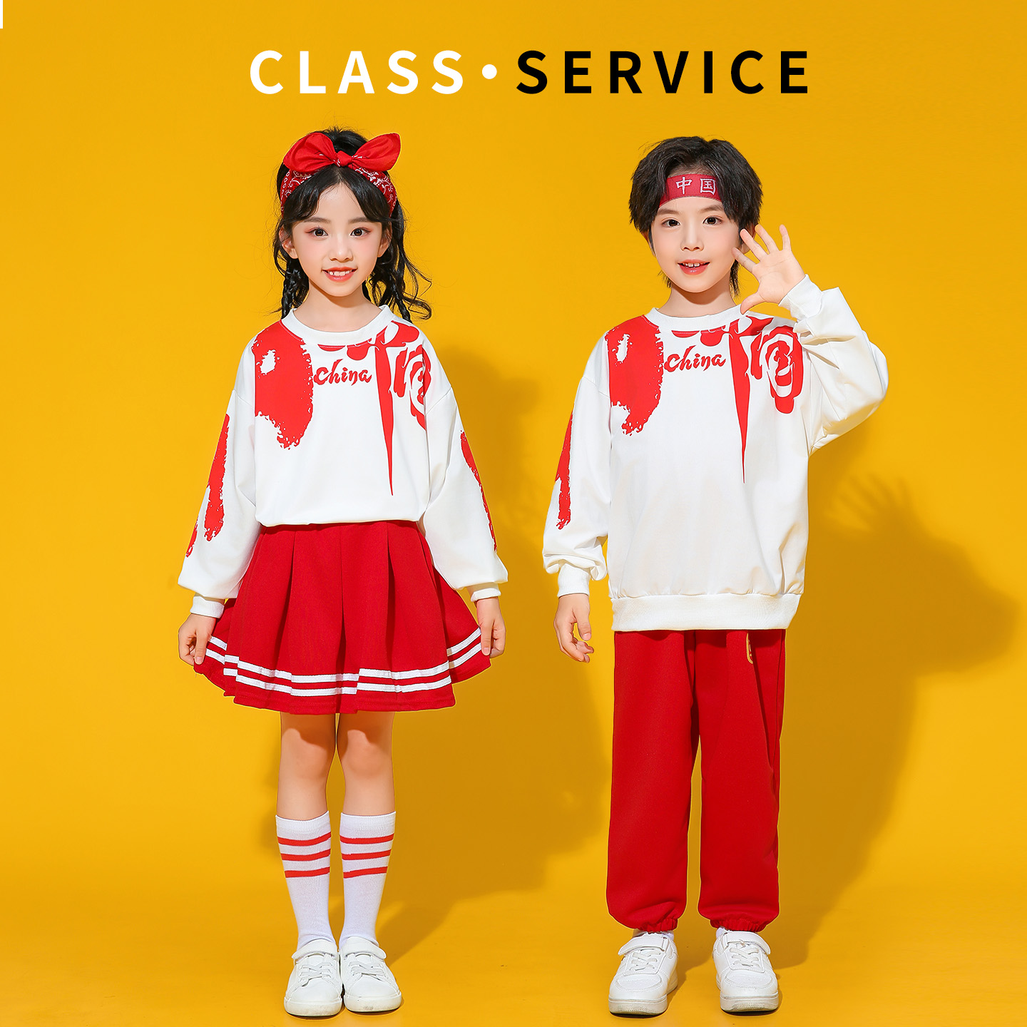 儿童啦啦队演出服小学生运动会开幕式服装中国红幼儿合唱班服套装