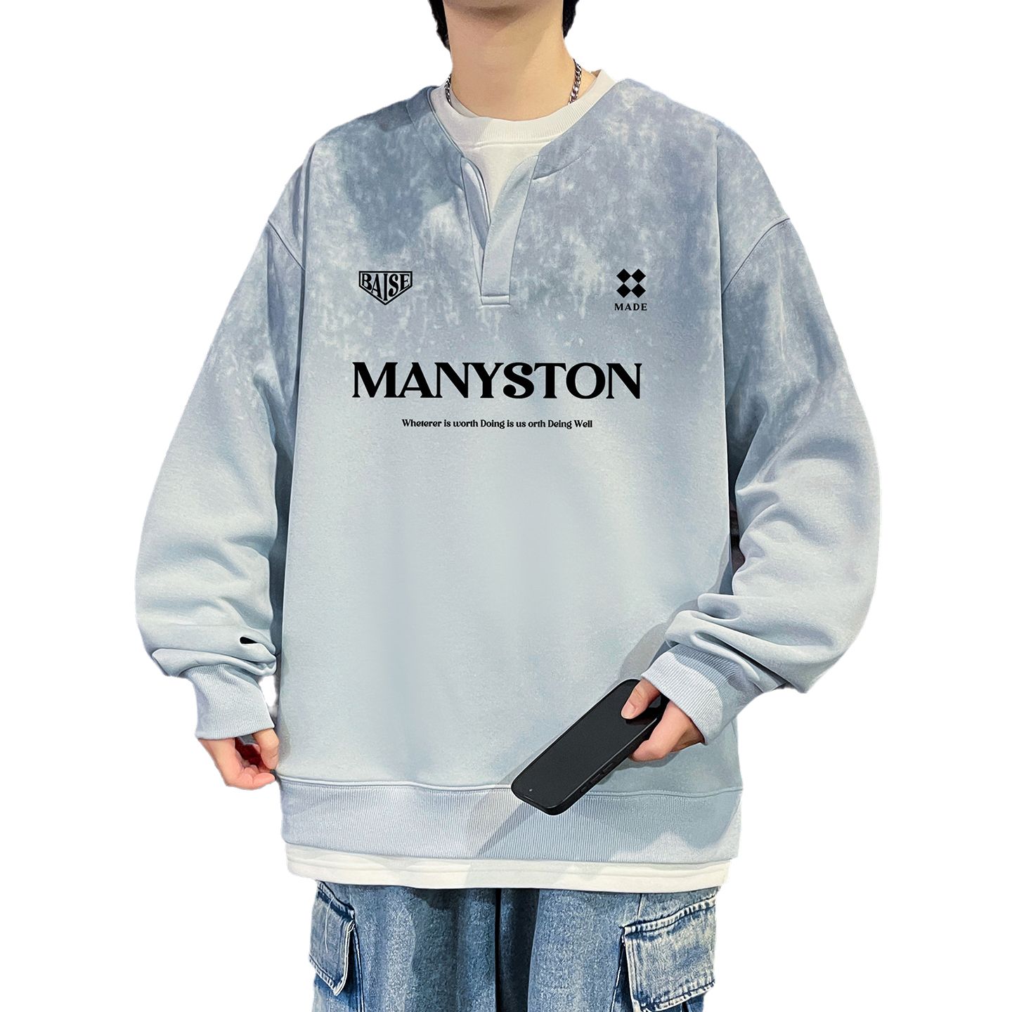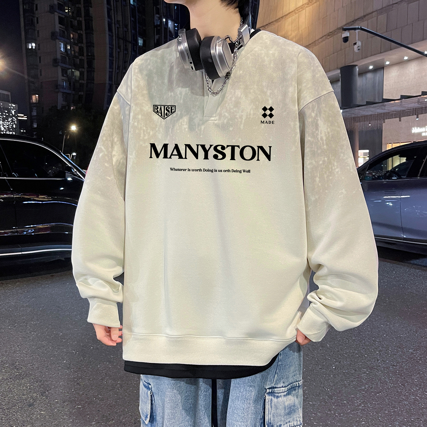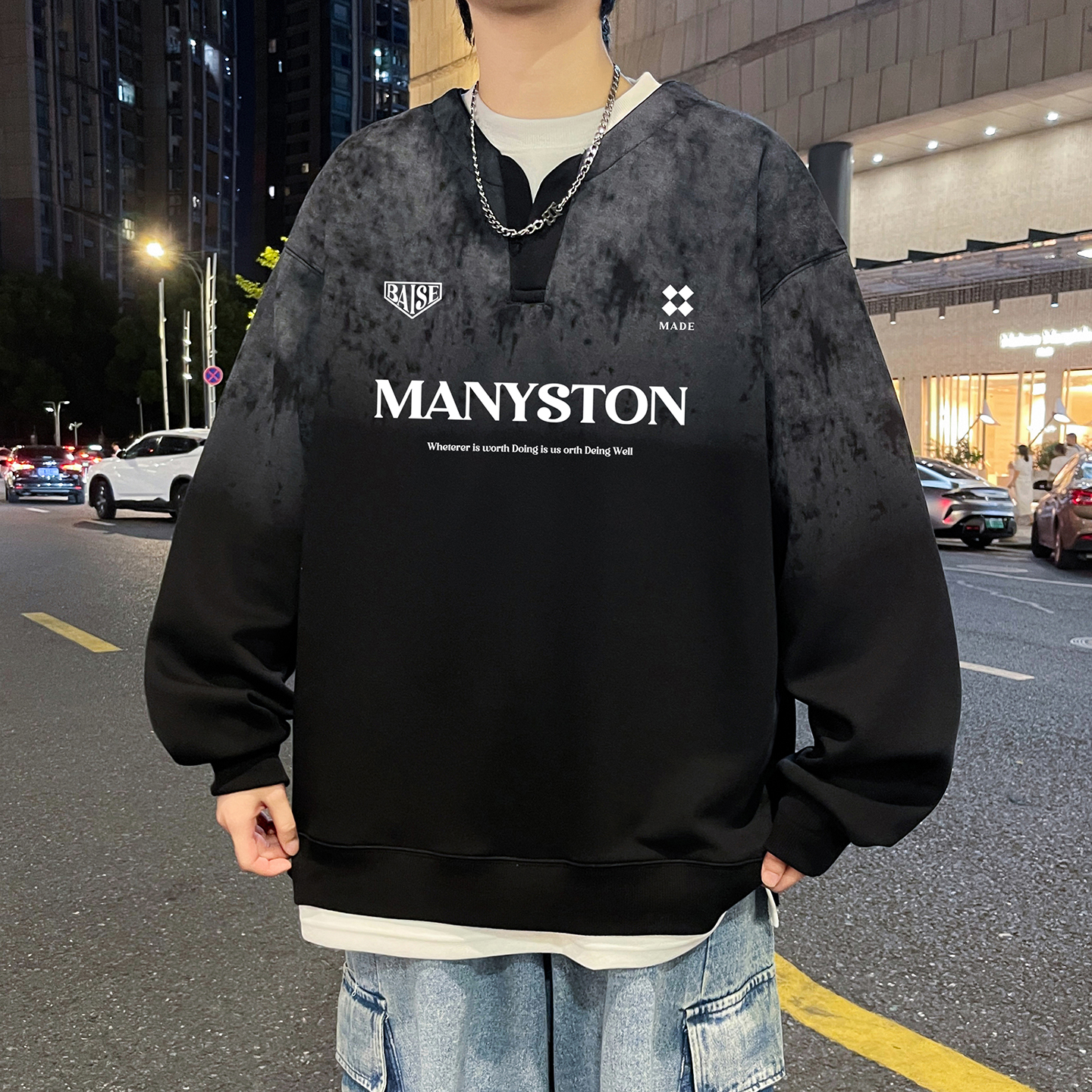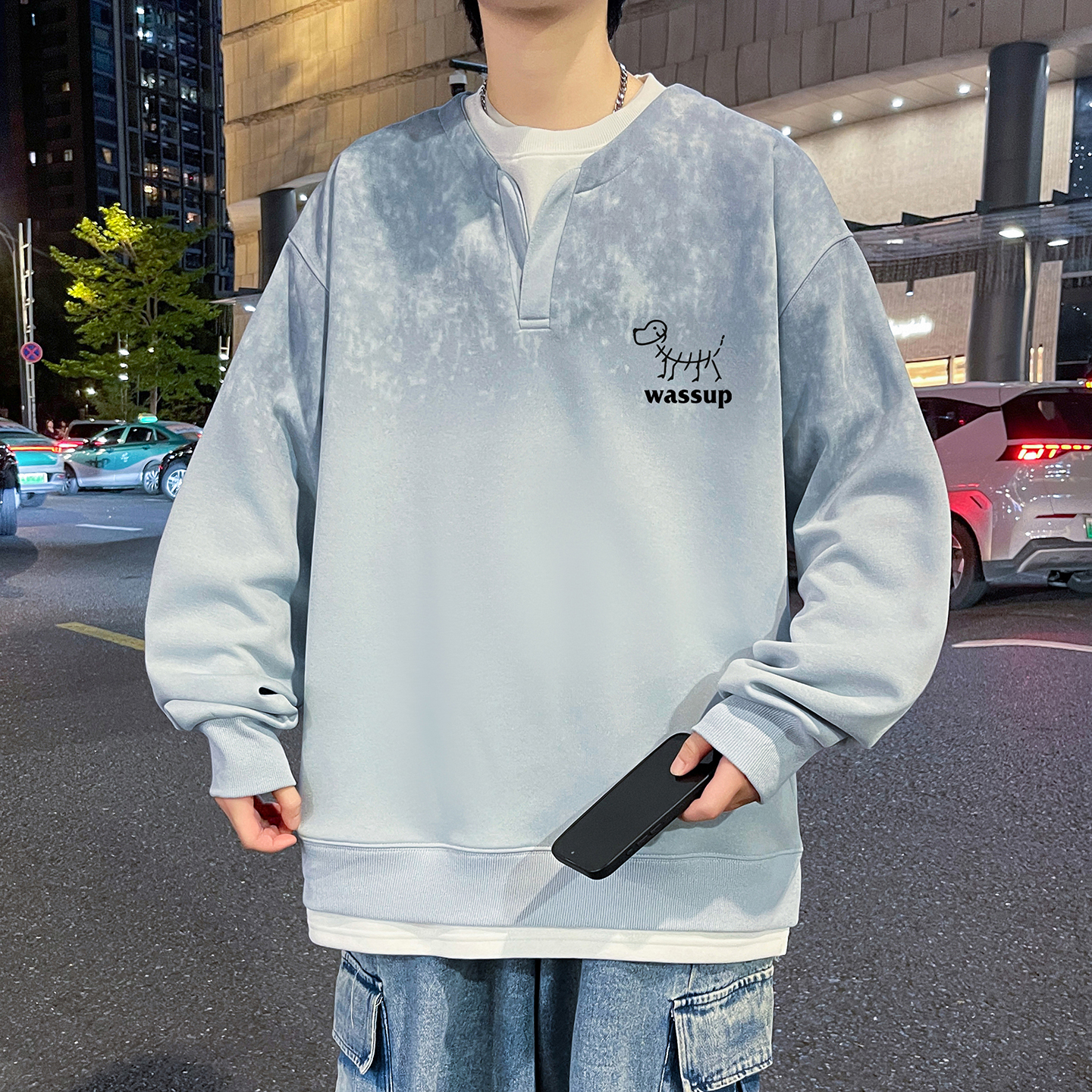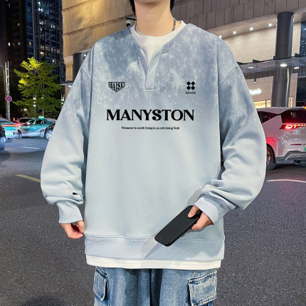 春秋季青少年圆领卫衣男孩初高中学生潮流长袖t恤大童假两件上衣
