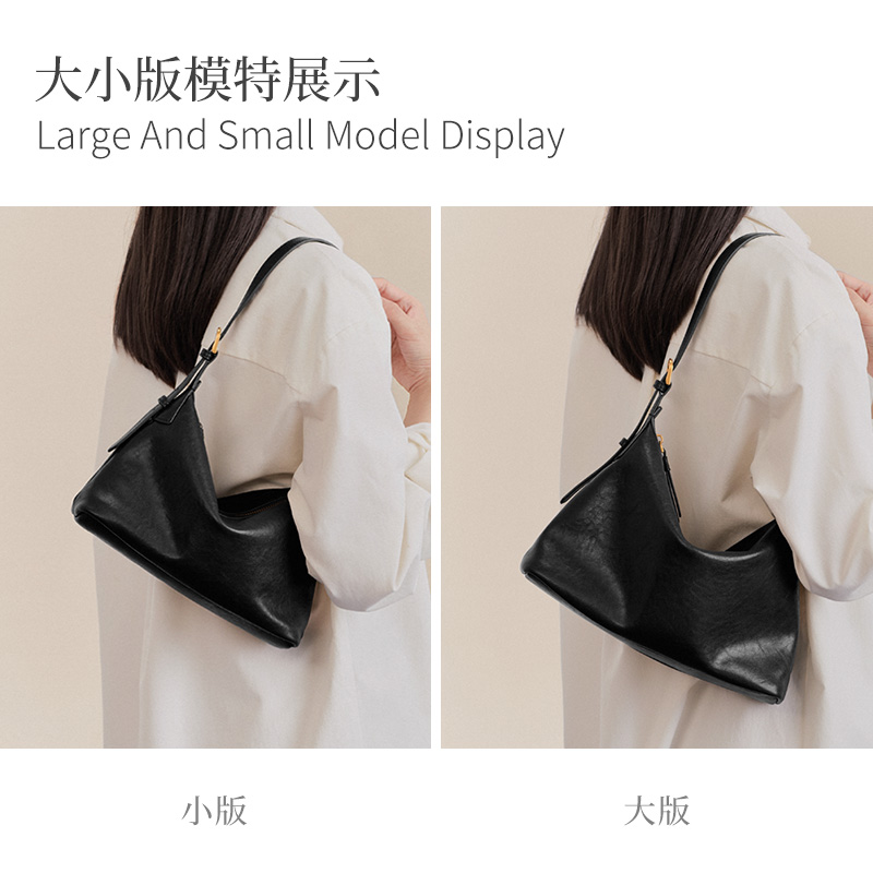 妙迪植鞣头层牛皮hobo腋下包秋冬真皮轻软大容量职场通勤斜挎包女