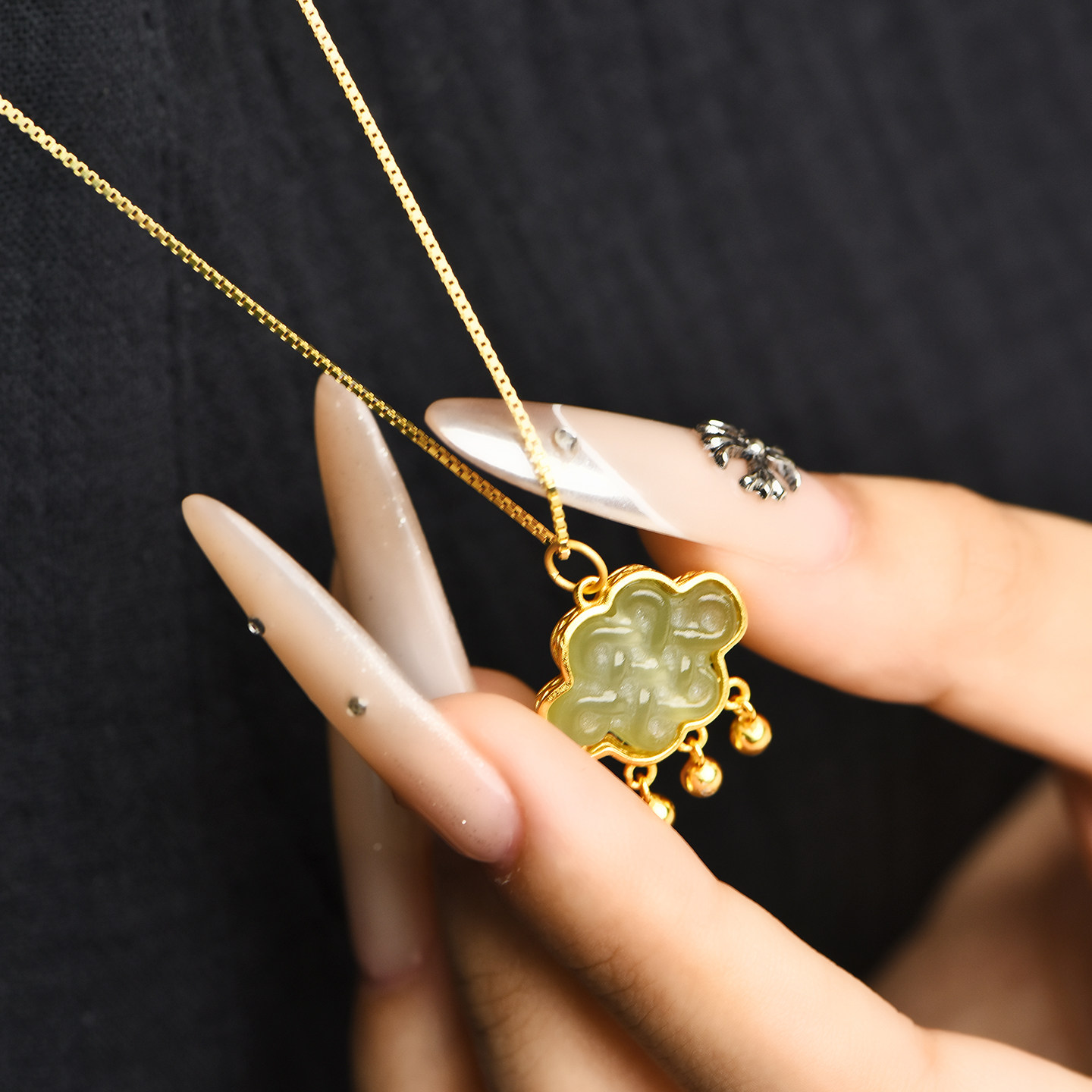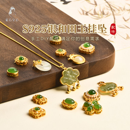 S925纯银diy配件和田玉吊坠碧玉配饰精致不易掉色高端长命锁挂饰
