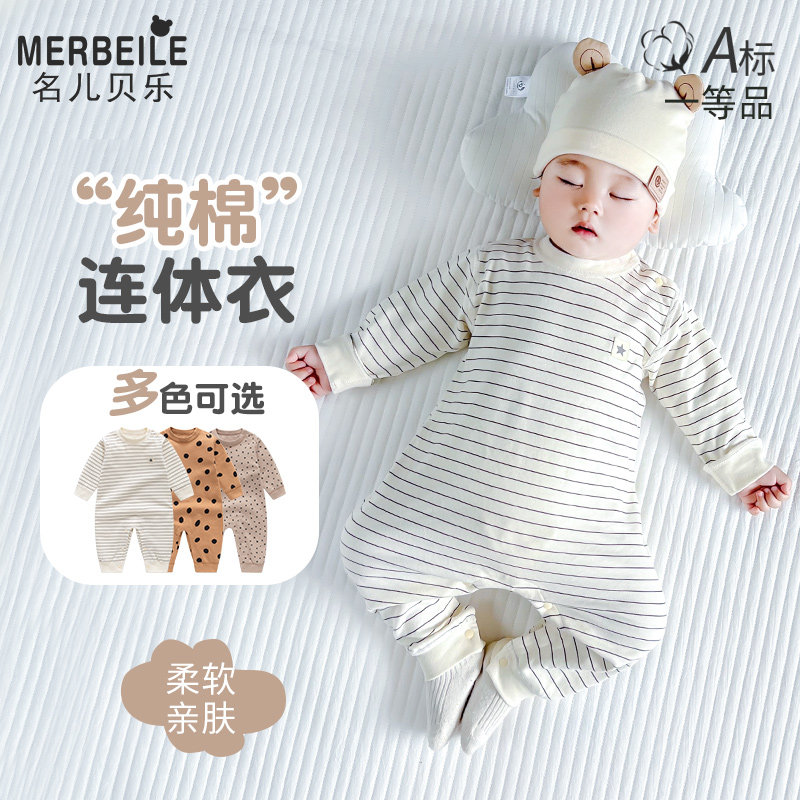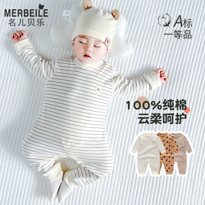 婴儿纯棉连体衣宝宝四季款哈衣长袖爬服男女童秋冬季外出服打底衫