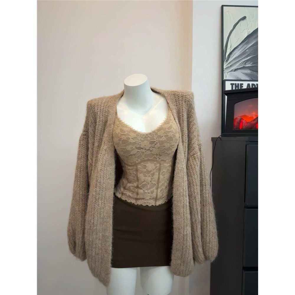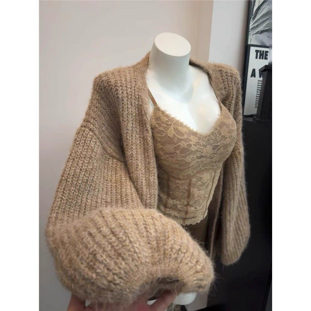 三件套女2025秋冬新款复古纯欲风宽松毛衣外套蕾丝吊带背心半身裙
