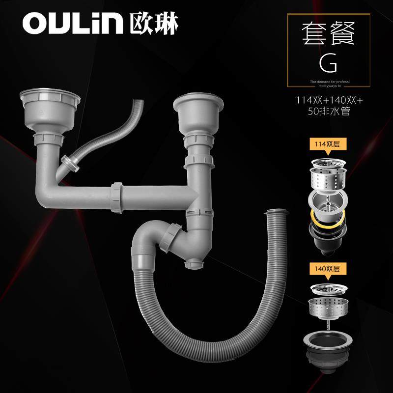 欧琳水槽双水槽下水配件 下水管套装 水槽配件 厨房洗菜盆落水配