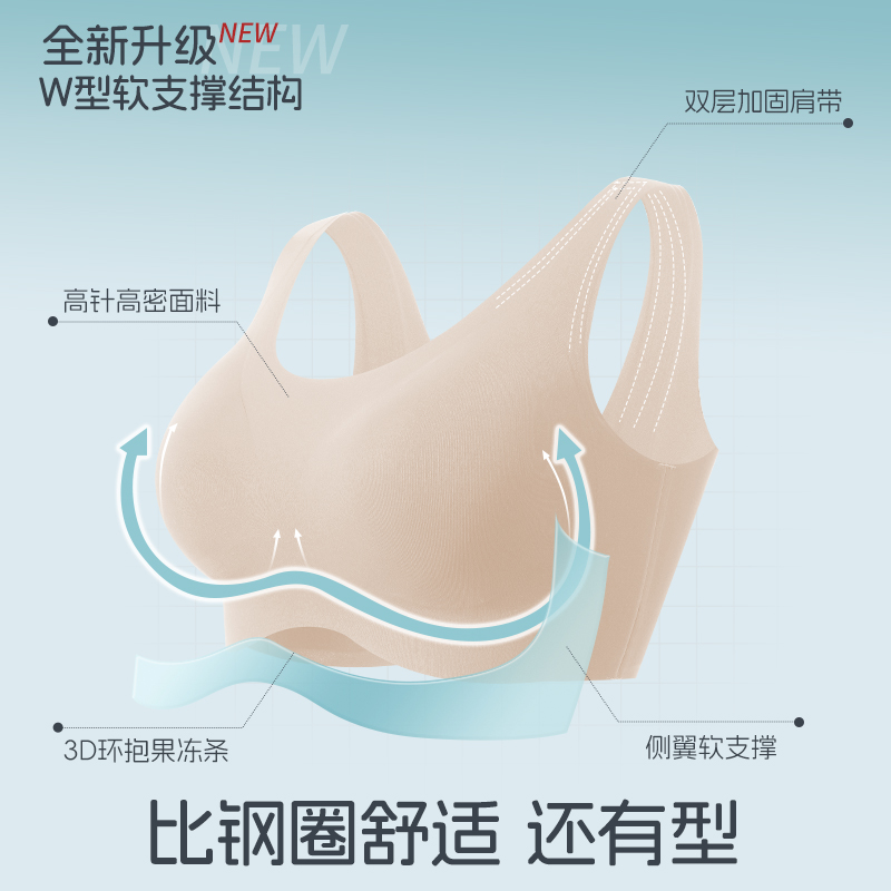 大胸显小文胸无排扣无钢圈无痕背心内衣女秋季薄款全罩杯大码胸罩