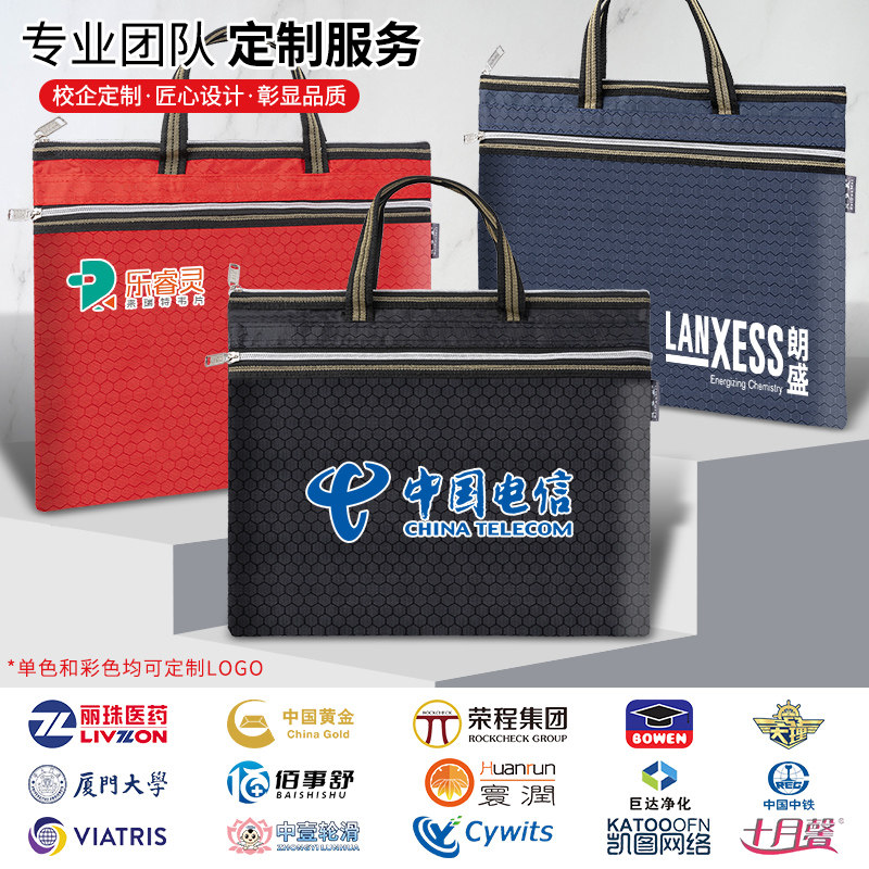 帆布手提文件袋拉链文件包牛津布公文包男资料商务办公会议女定制