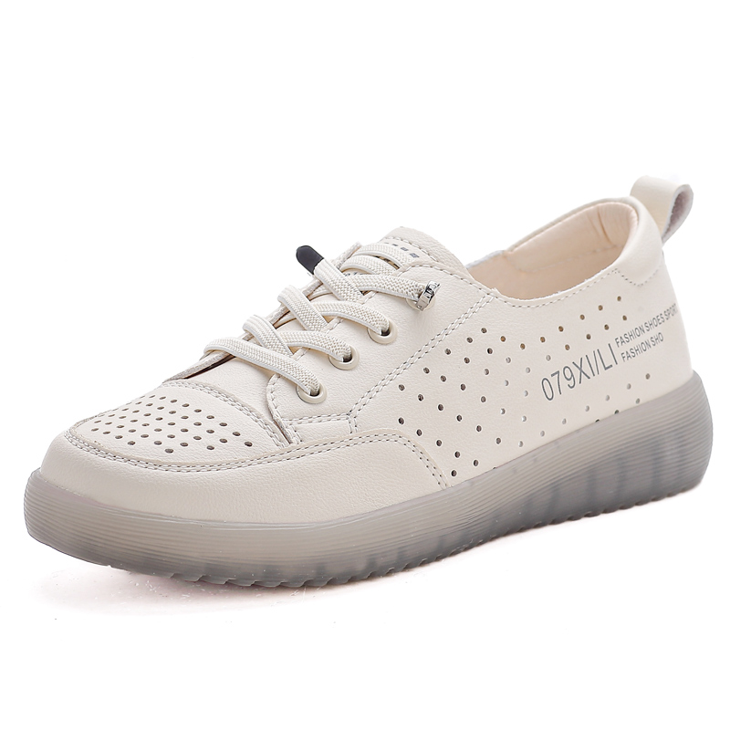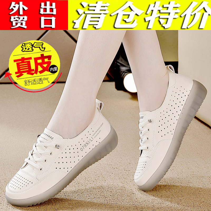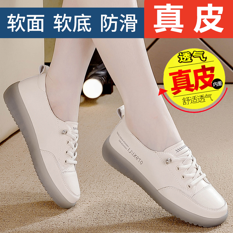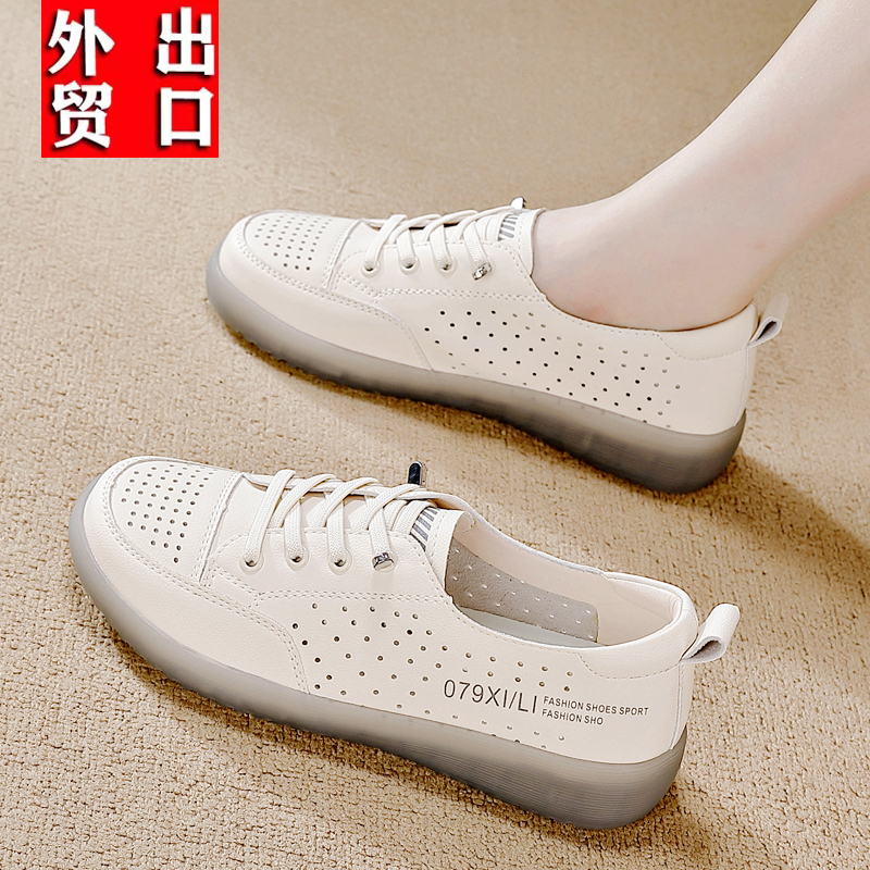 真皮小白鞋女2025秋季镂空透气牛筋软底小皮鞋平底一脚蹬休闲单鞋