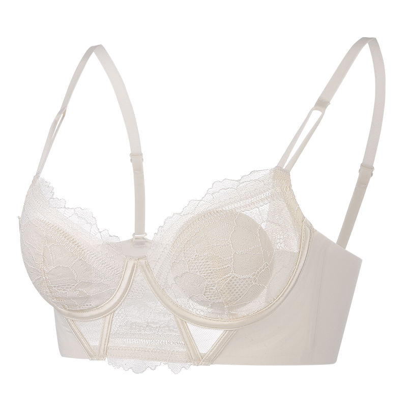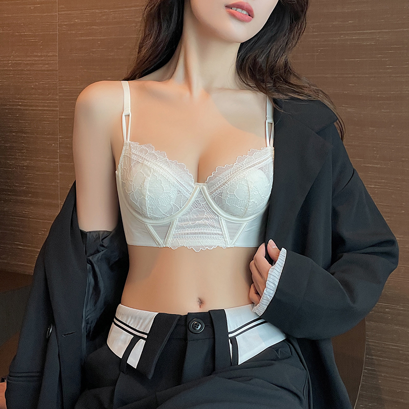 法式内衣女夏薄款大胸显小收副乳防下垂软钢圈性感蕾丝超薄款文胸