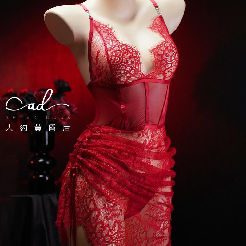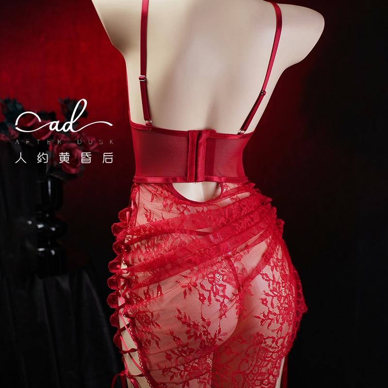 新娘情趣 红色内衣套装蕾丝睡裙透视装女吊带性感睡衣大码新款