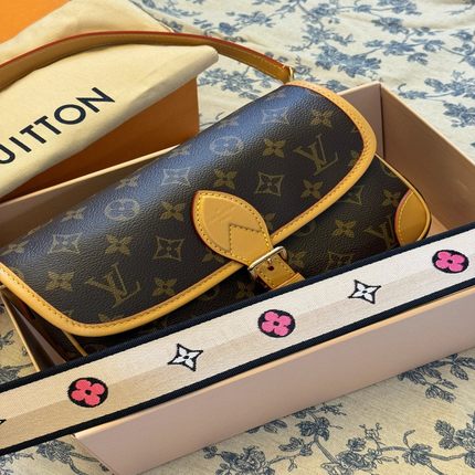 代购LV/路易威登女包老花法棍包翻盖包DIANE腋下包单肩挎包M45985