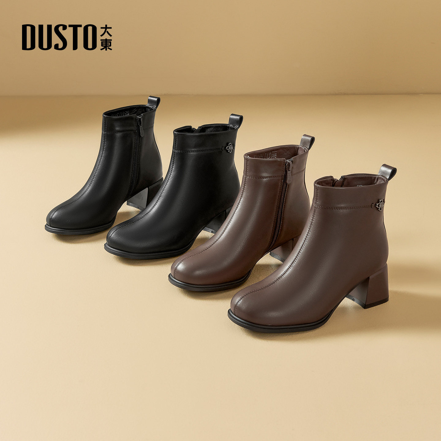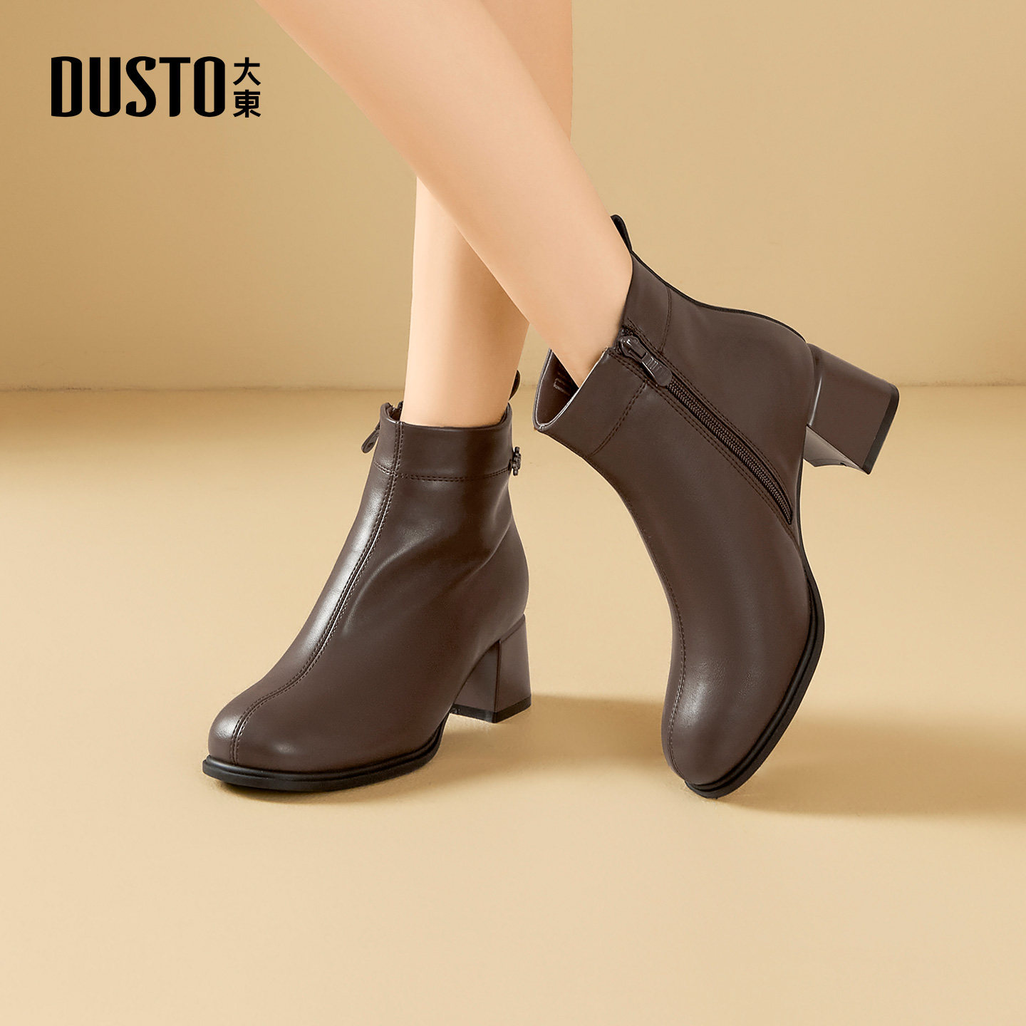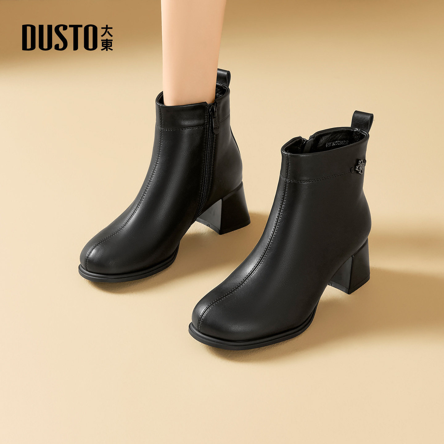大东dd高跟短靴2025新款冬季复古瘦瘦粗跟女士百搭女款马丁女靴子