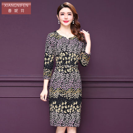 香妮芬春秋新款中年风高贵连衣裙