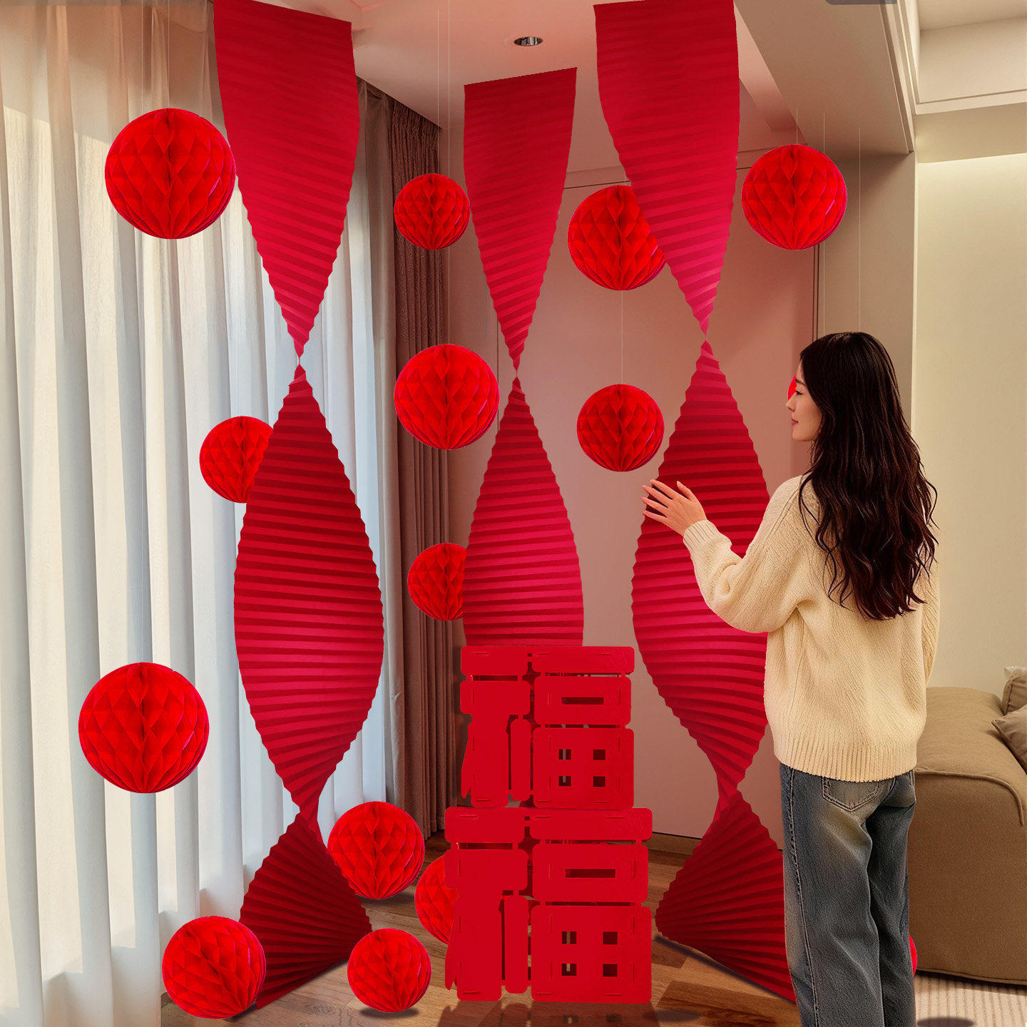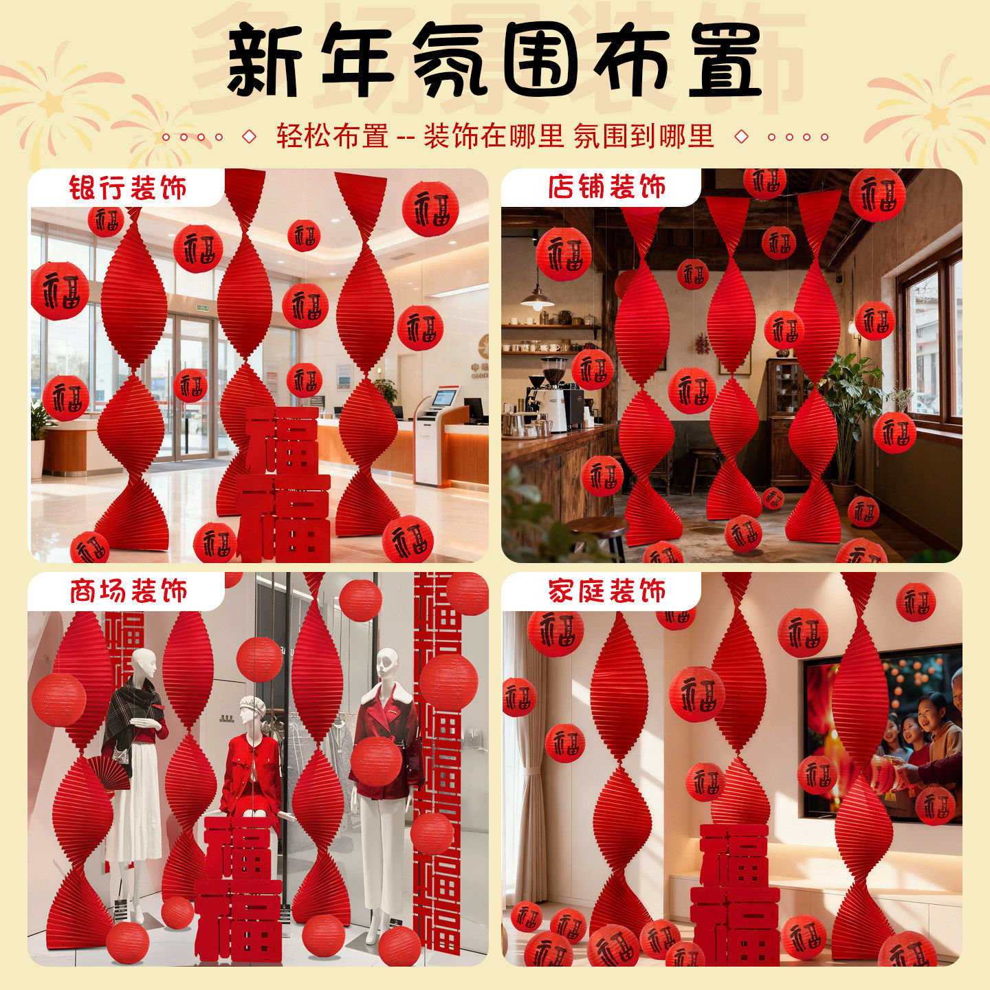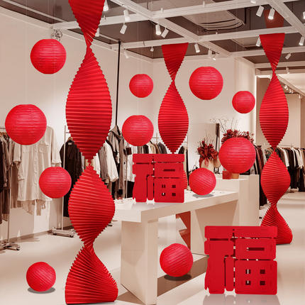 2026新年元旦氛围布置装饰商场服装店场景过春节折扇马年灯笼挂饰