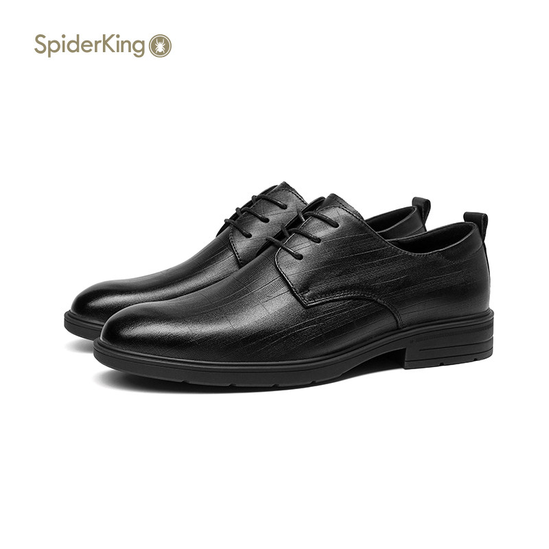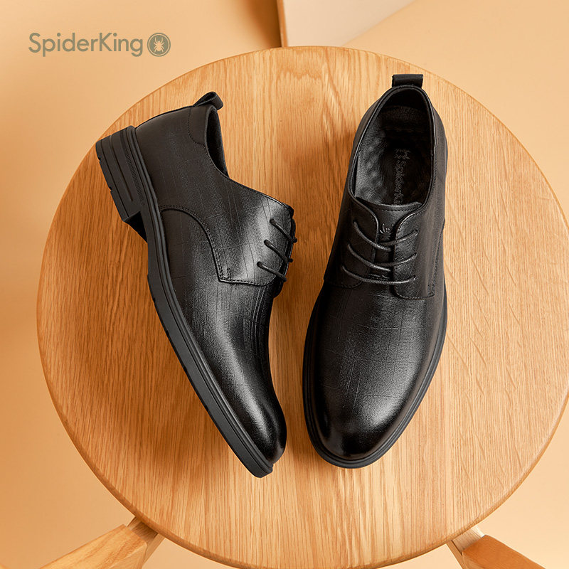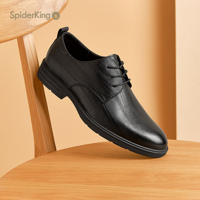 蜘蛛王男鞋官方正品2025夏新款商务正装皮鞋男真皮系带英伦德比鞋