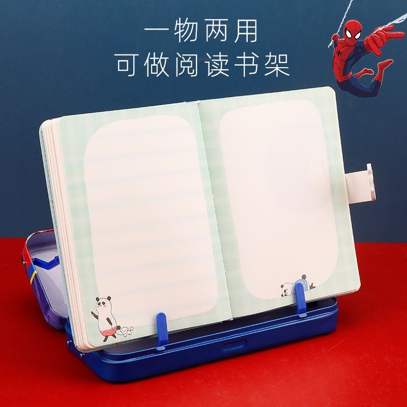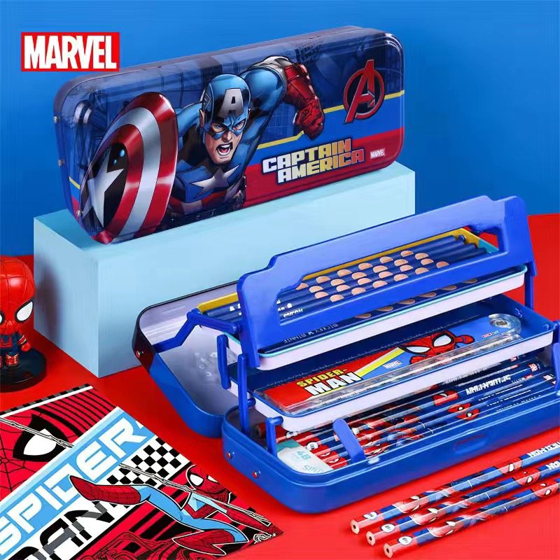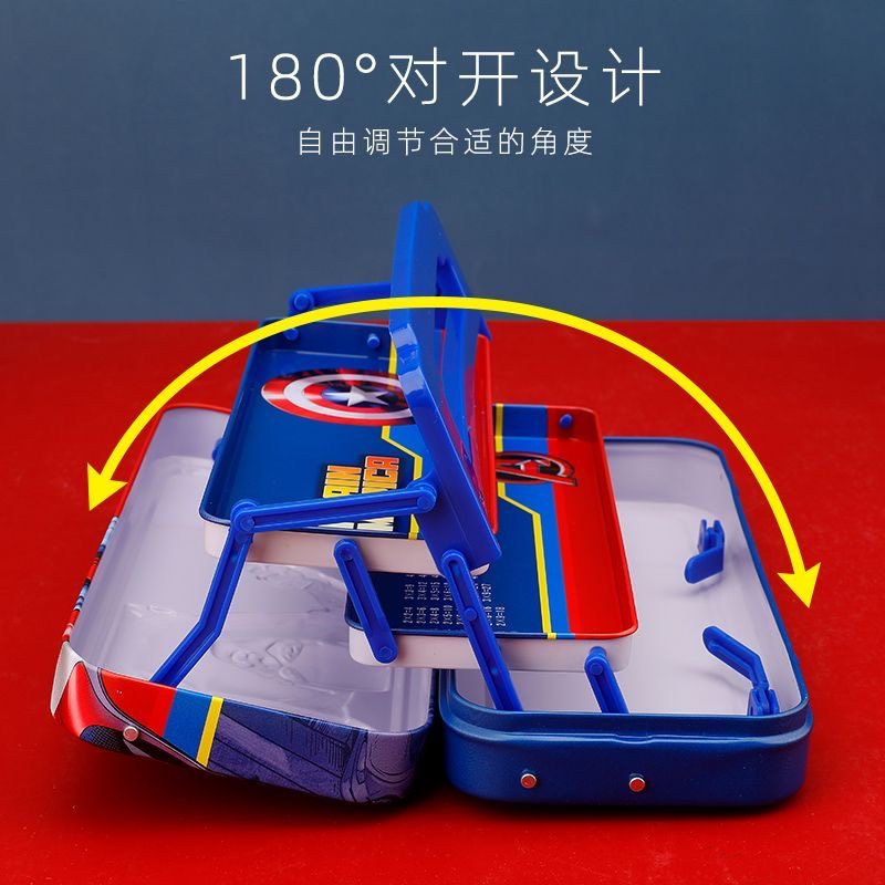 迪士尼小学生文具盒男孩多功能漫威蜘蛛侠美国队长贴笔盒儿童大容量收纳铅笔盒铁文具盒