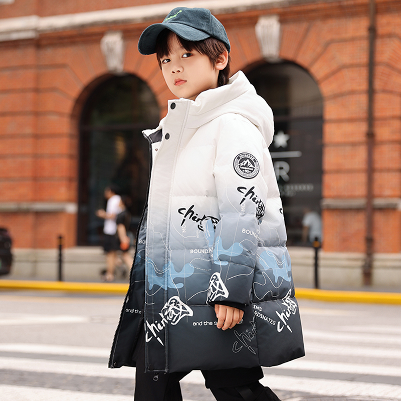 儿童羽绒服男童中长款2025新款中大童装加厚渐变男孩冬季保暖外套