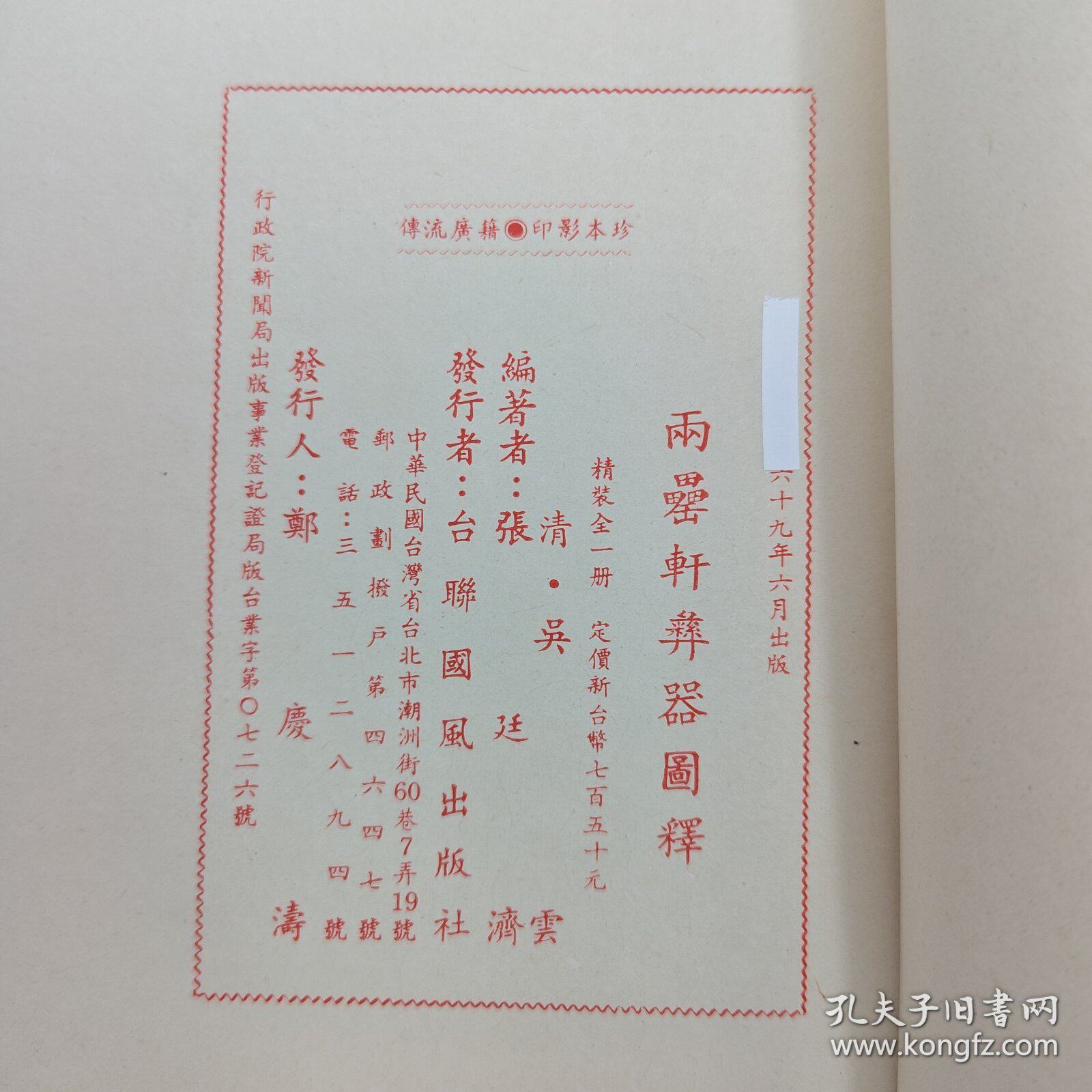 【港台原版】兩罍軒彝器圖釋 (16开 精装)1980年6月版、自然旧 台联国风版 不详 /正版现货