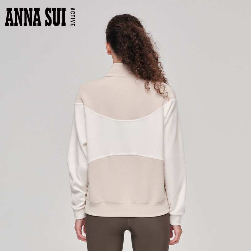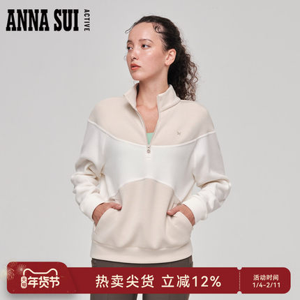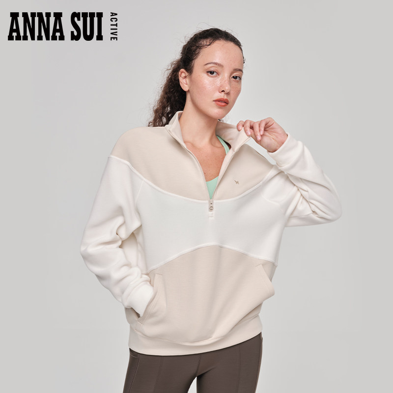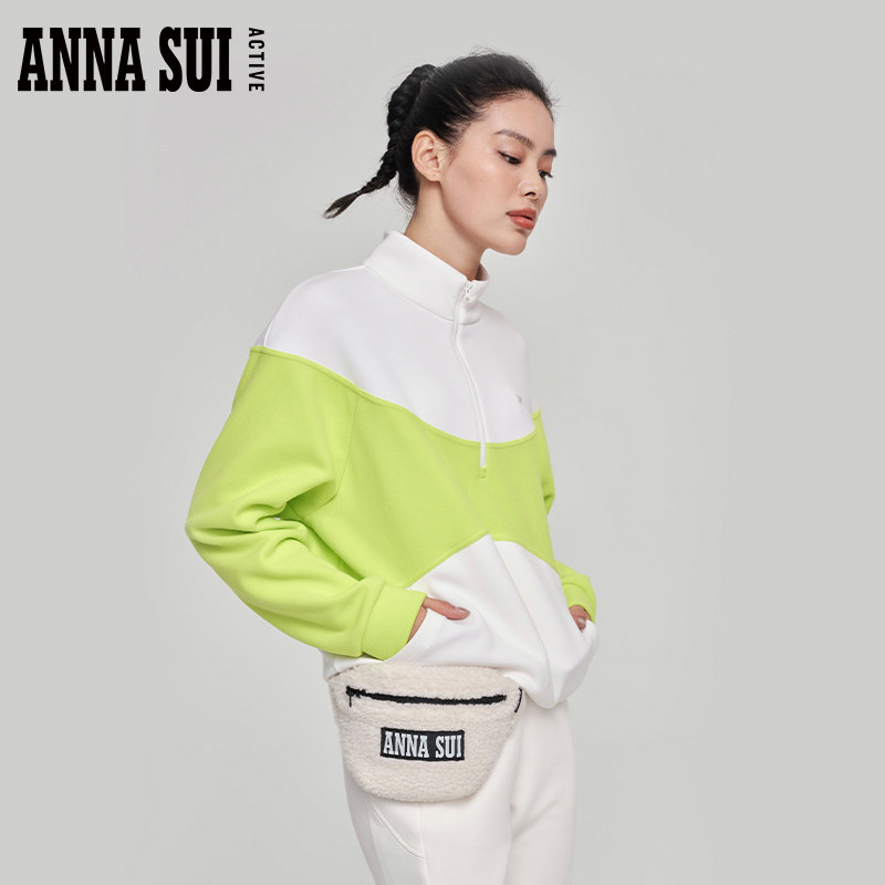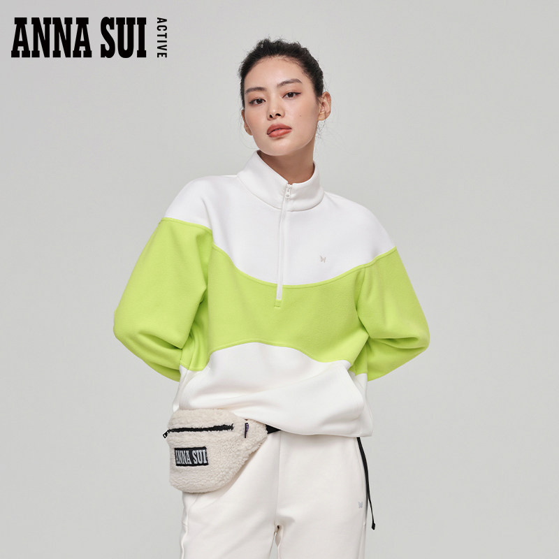 ANNA SUI安娜苏运动 棉花糖 秋季撞色立领卫衣加厚半拉链套头衫