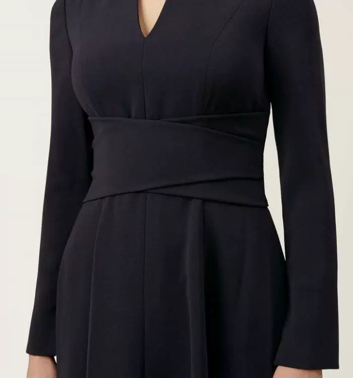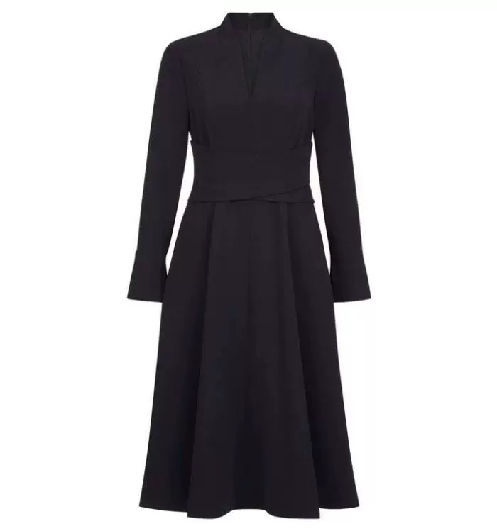 英国贵牌H家大码女装立体裁剪V领长袖连衣裙高级感简约气质礼服