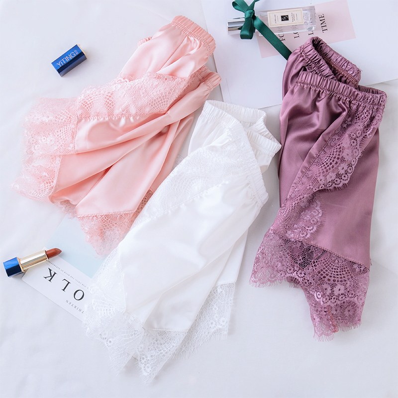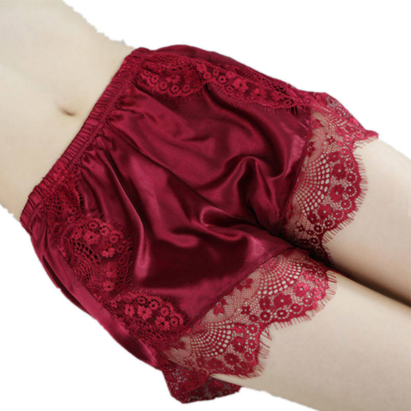 蕾丝安全裤女防走光打底裤睫毛花边真丝滑缎面红色结婚不卷边外穿