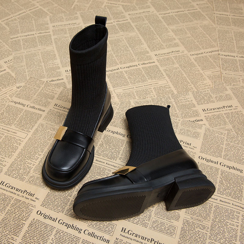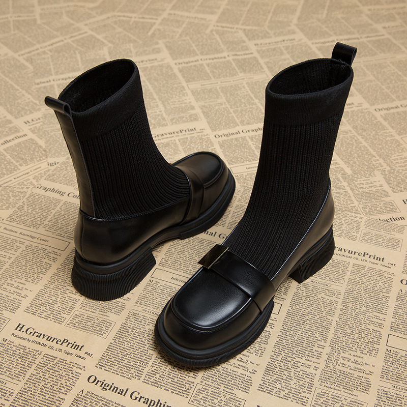 真皮袜靴女2023今年流行的洋气