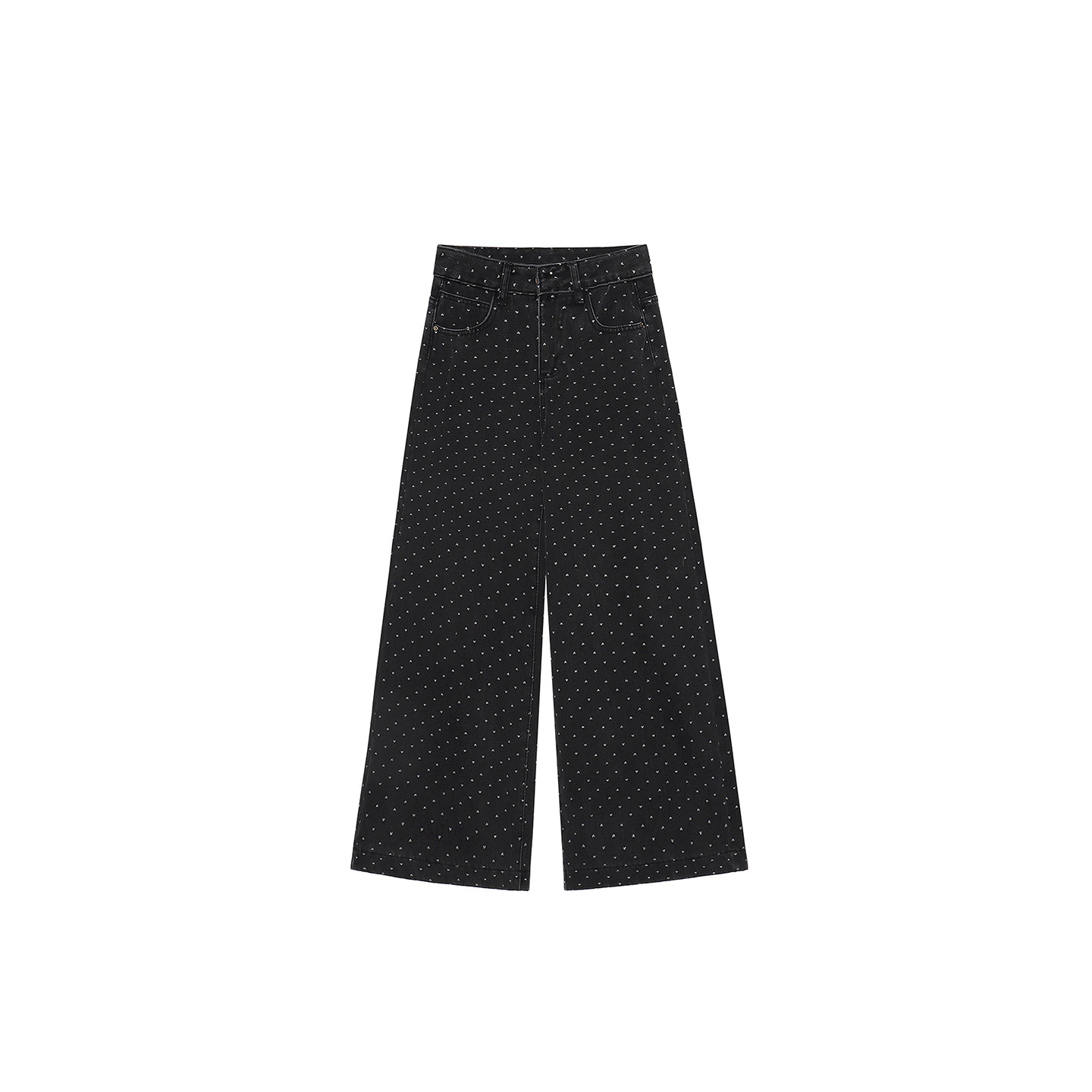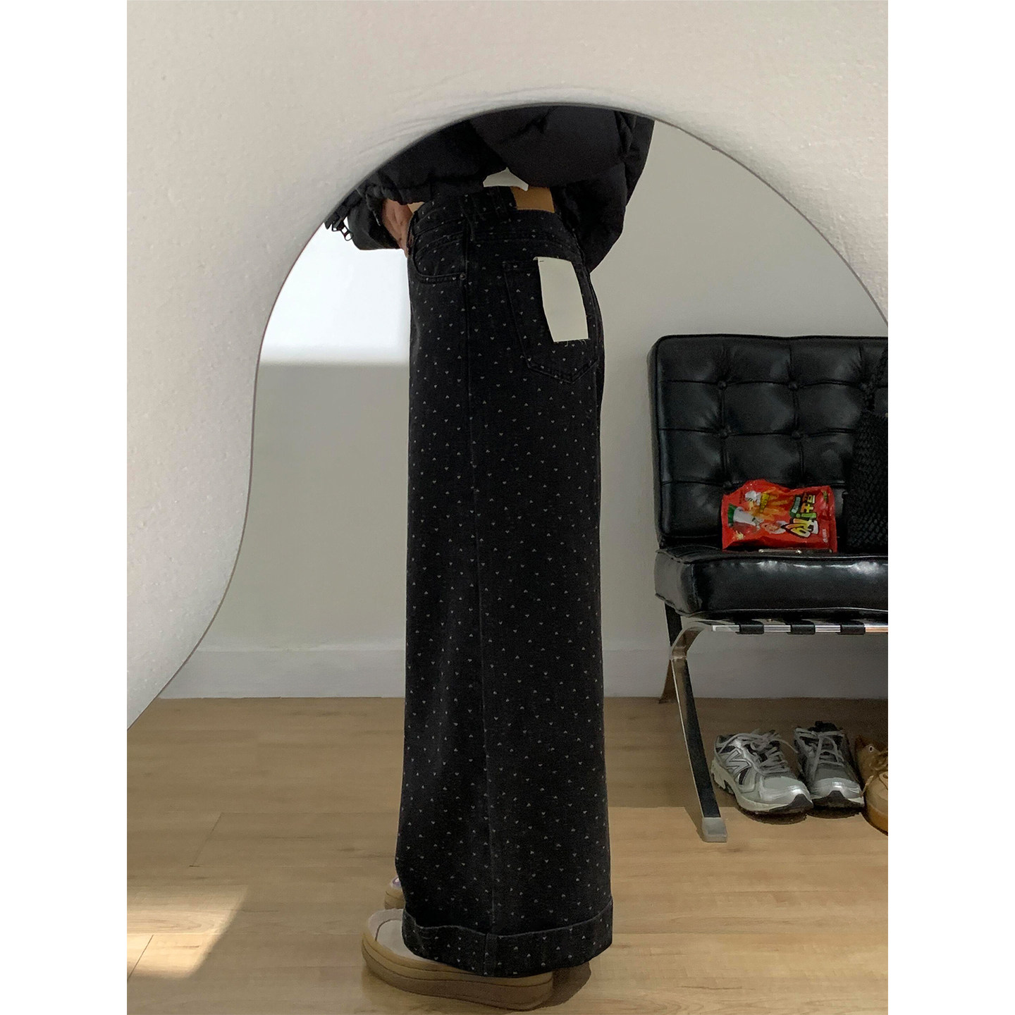 黑色爱心阔腿牛仔裤女冬季加绒胖妹妹mm梨型身材高腰显瘦直筒长裤
