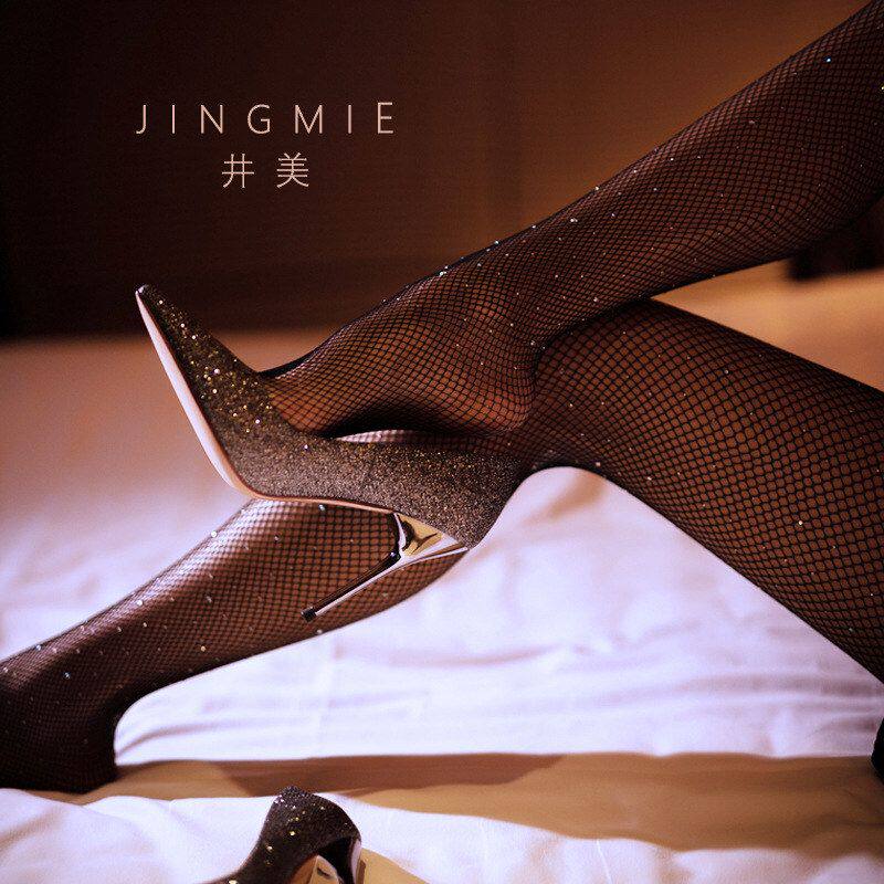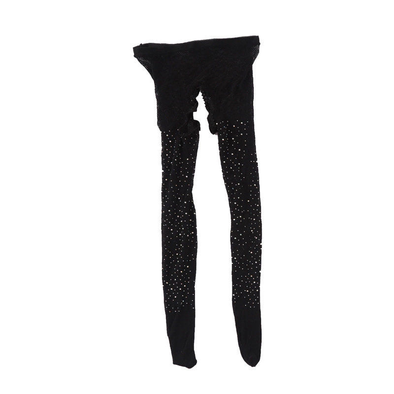 Miss Q开裆JK黑丝潮流ins镂空带钻丝袜性感渔网袜辣妹亮晶晶免脱