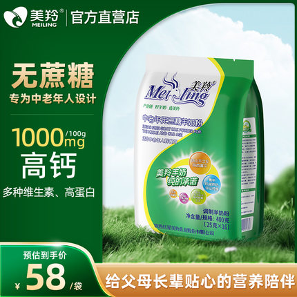 【美羚官方店】红星美羚羊奶粉成年老年人奶粉中老年无蔗糖羊奶粉