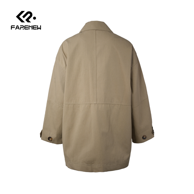 凡人优品女士风衣外套中长款翻领休闲工装风大口袋A139