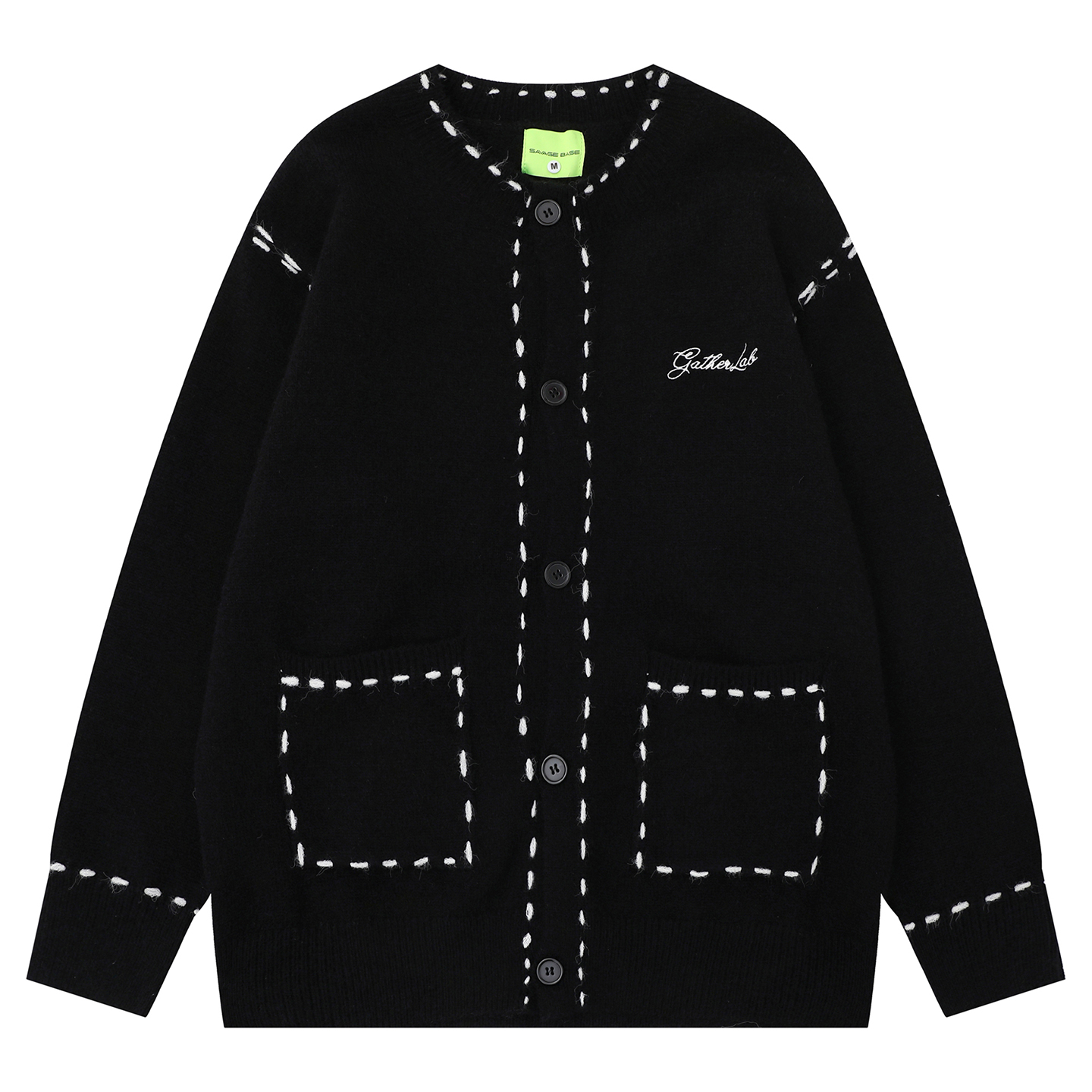 悟空有货复古撞色字母刺绣圆领针织衫男秋季情侣宽松休闲毛衣外套