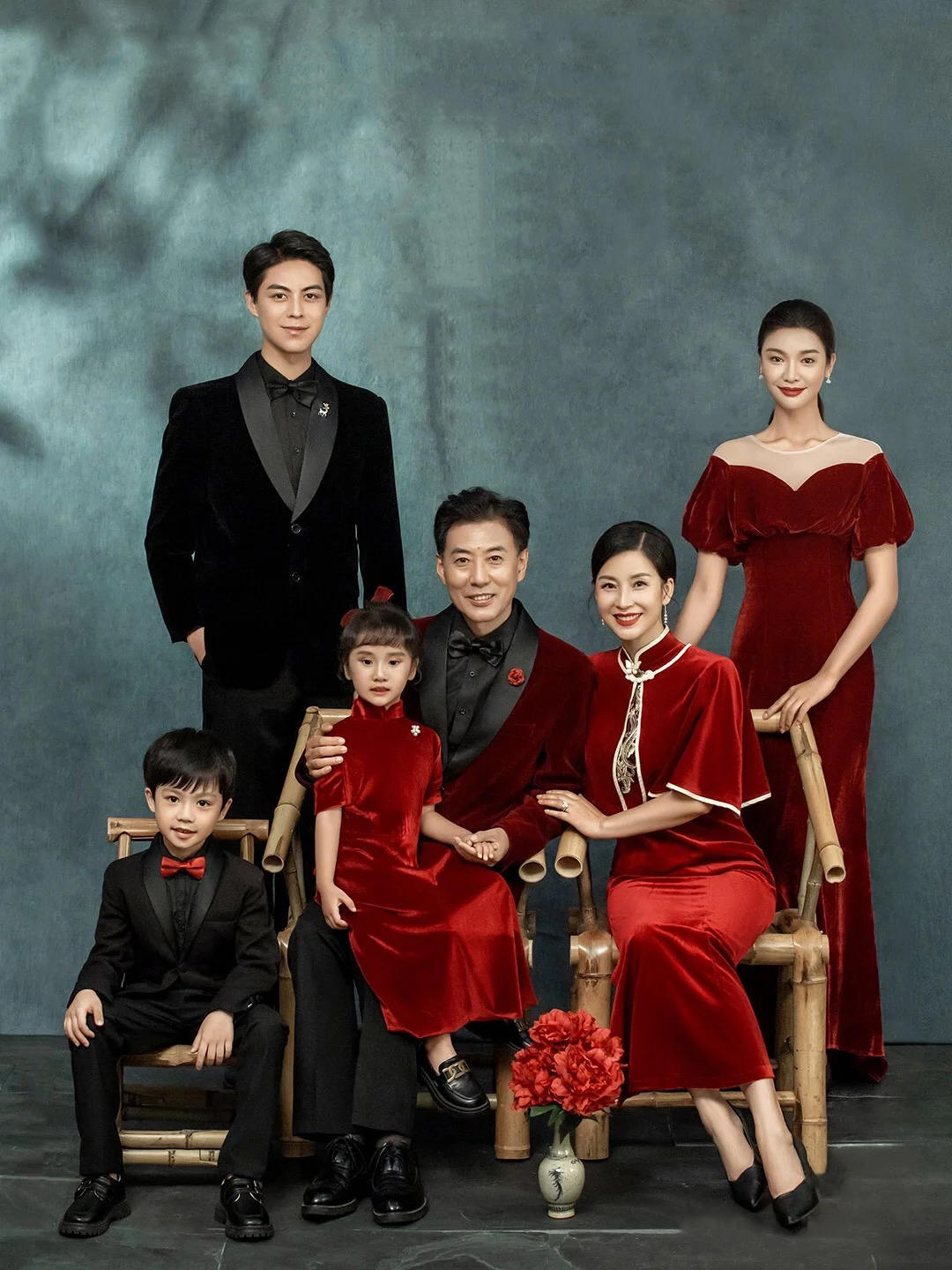 影楼全家福亲子主题服饰秀禾礼服旗袍复古中式民国风一家六口四口