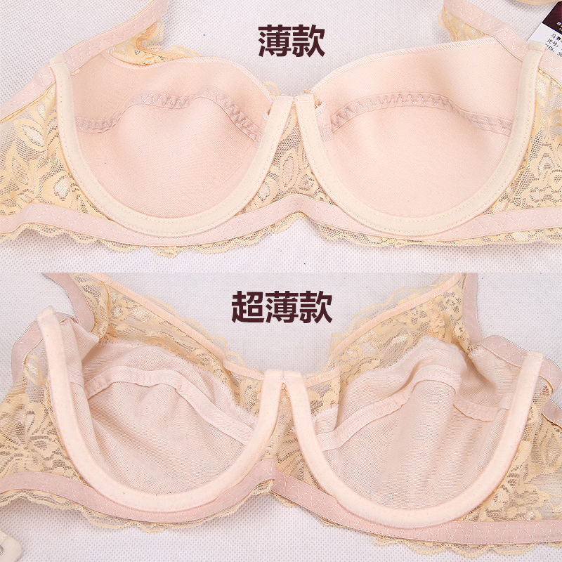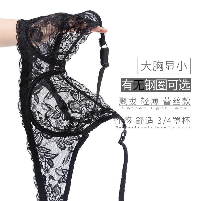 蕾丝文胸无钢圈超薄款无海绵大胸显小性感胸罩聚拢乳罩大码内衣女