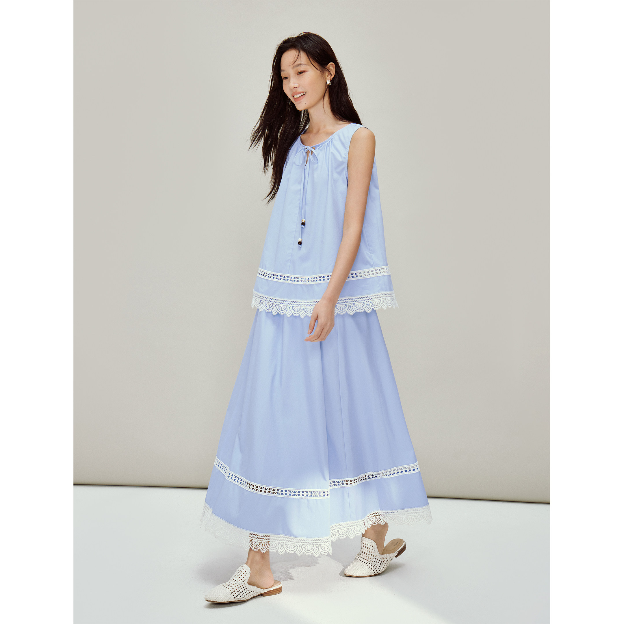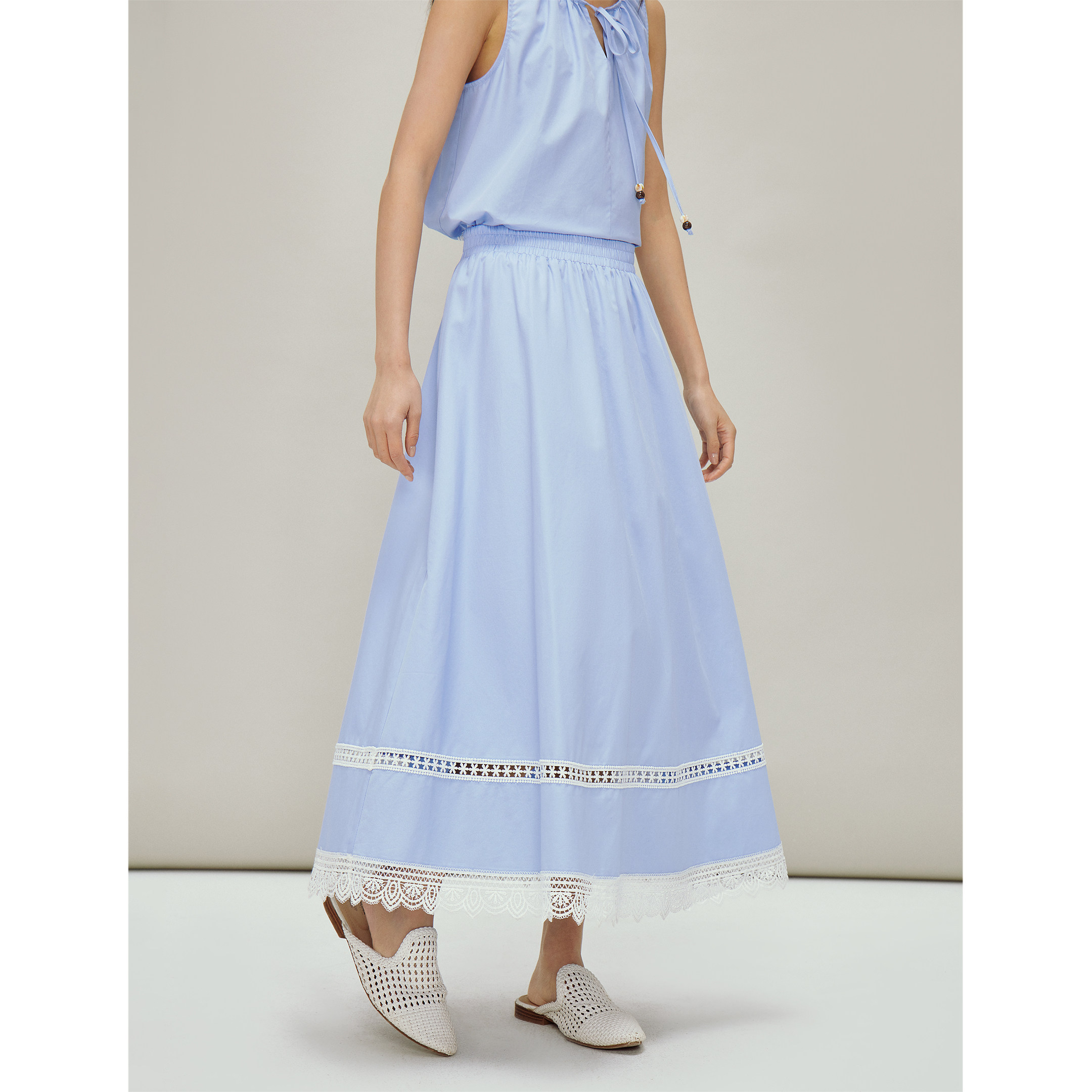 茵曼莱赛尔蕾丝刺绣半身裙2026春季女装新款松紧腰a字宽松裙子