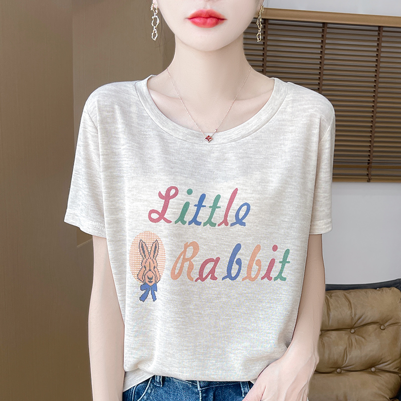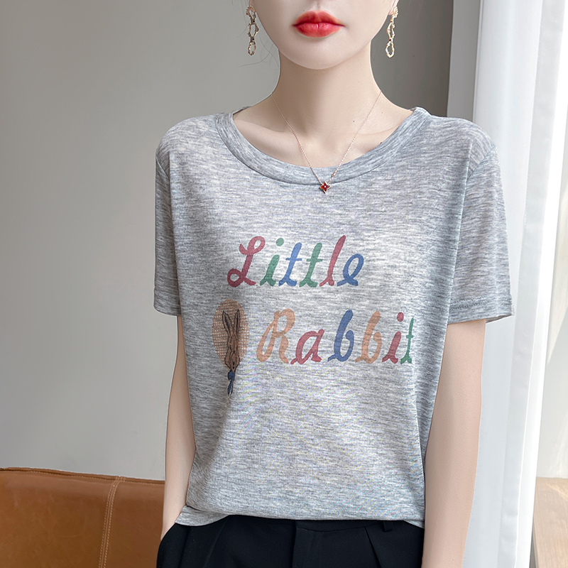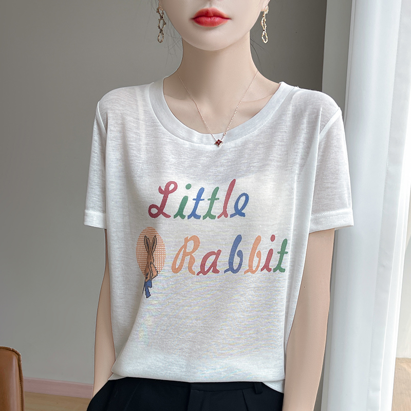 2025夏新款圆领冰丝竹节亚麻薄款短袖针织女高度T恤上衣防晒减龄