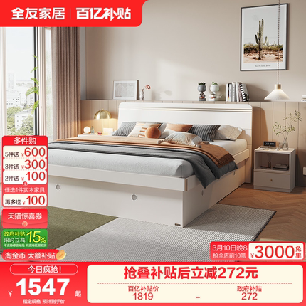 全友家居现代简约1.8米双人床家具主卧室板式床1米5落地储物床