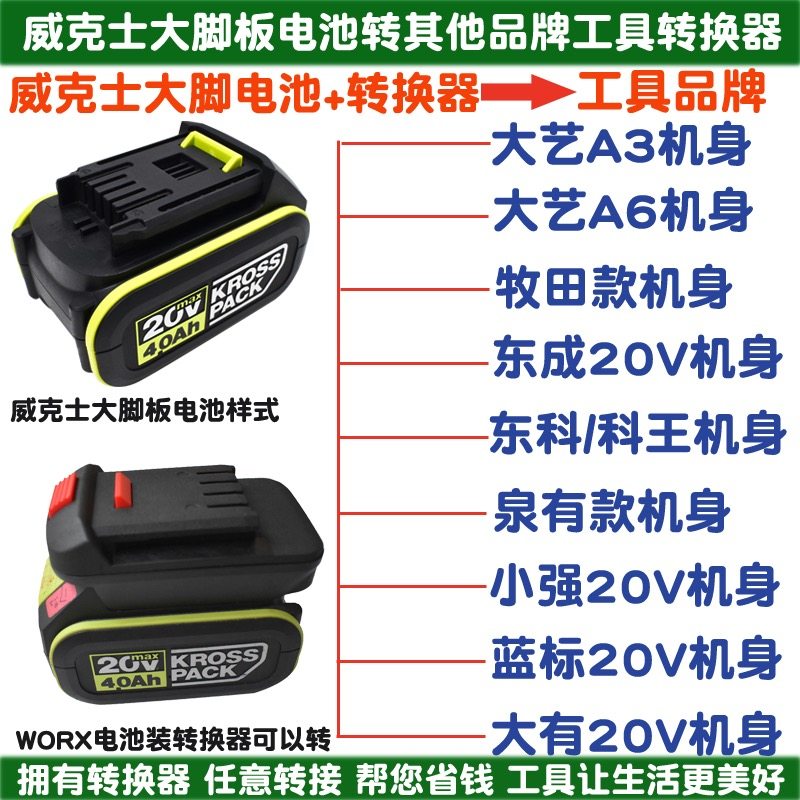 小脚板威克士worx电池转换器转换各类品牌机子转接头电池转换器