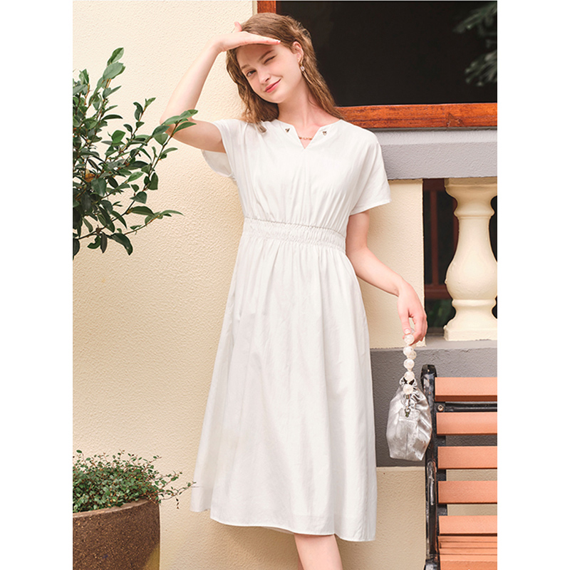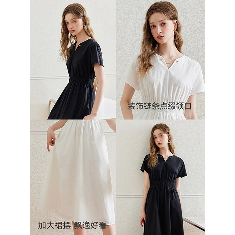KBNE【莱赛尔】连衣裙女白色领裙子 2025夏季新款高端精致长裙