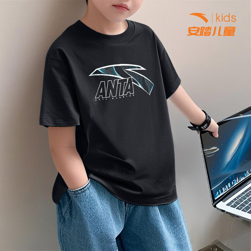 安踏儿童短袖男童夏季2026新款透气T恤中大童夏装百搭运动速干衣