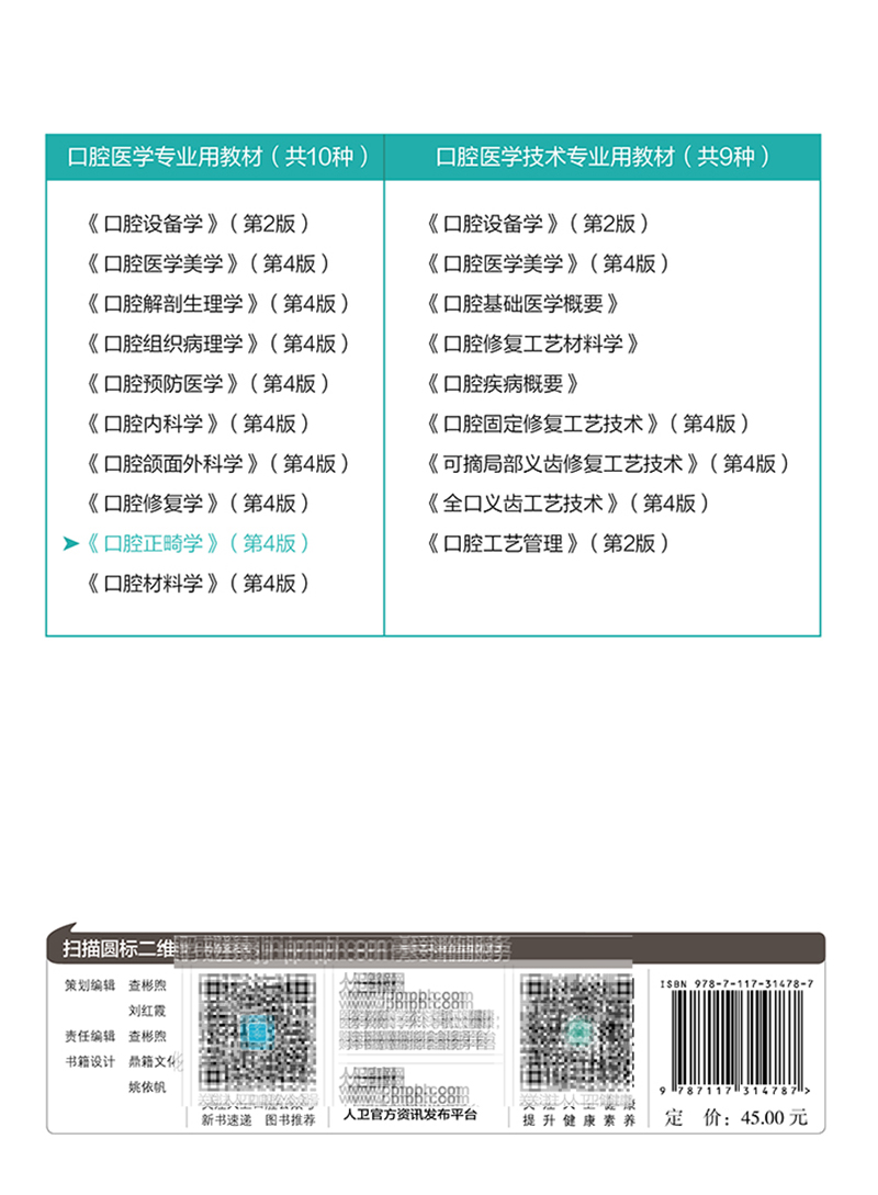 现货正版平装 口腔正畸学 第4版/配增值十三五全国高职高专口腔医学和口腔医学技术专业规划教材左艳萍杜礼安人民卫生出版社