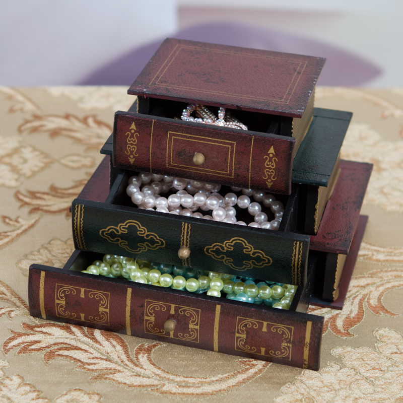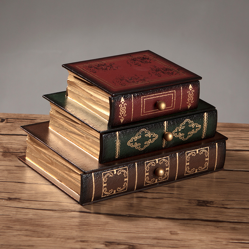 欧式家居摆件首饰品抽屉式收纳盒复古木质书盒假书模型摄影道具书