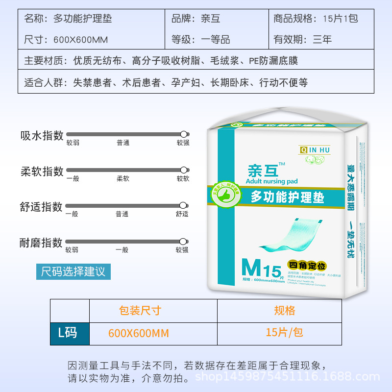 亲互60*60成人护理垫强吸收老人绵干爽15片产后产妇产褥期护垫