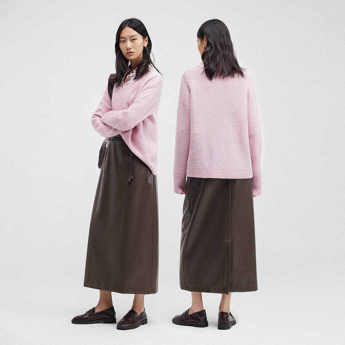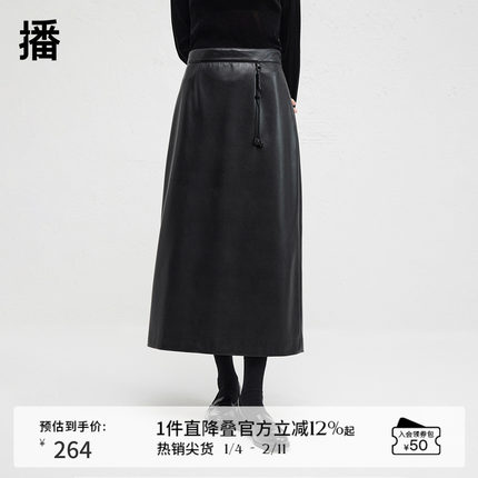 播商场同款PU皮半身裙女24冬新款高腰显瘦气质直筒半裙BDR4BD3476