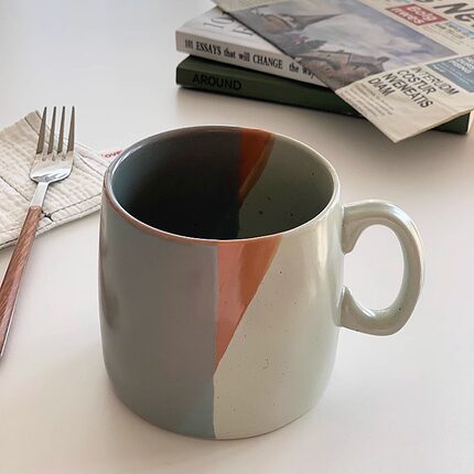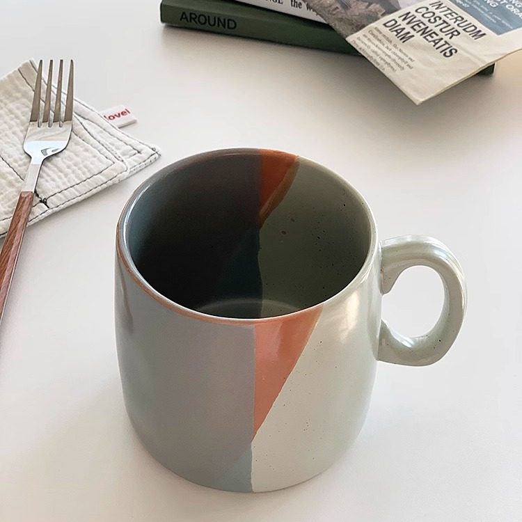 安木良品 外贸原单 北欧小镇粗陶风撞色陶瓷水杯子咖啡牛奶马克杯