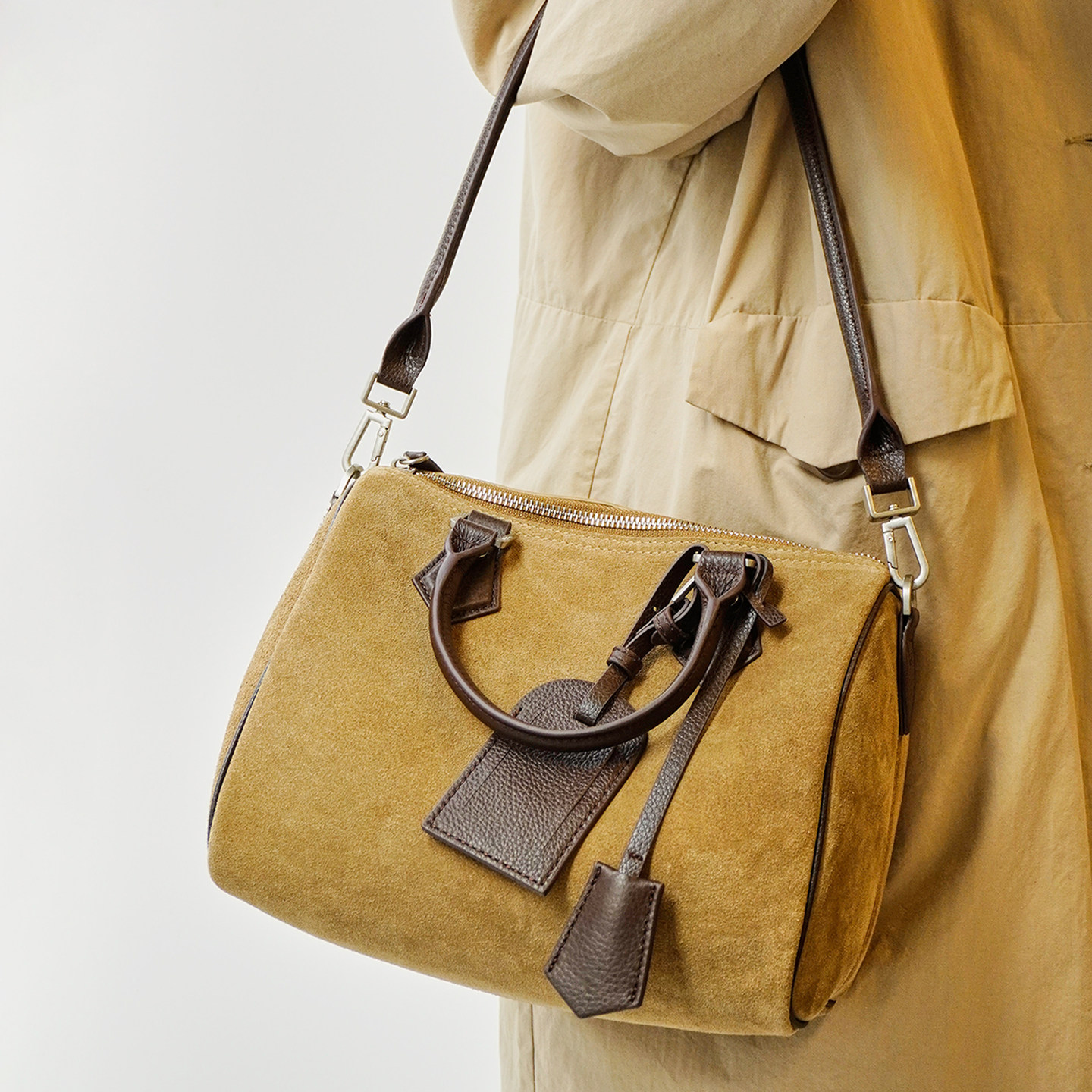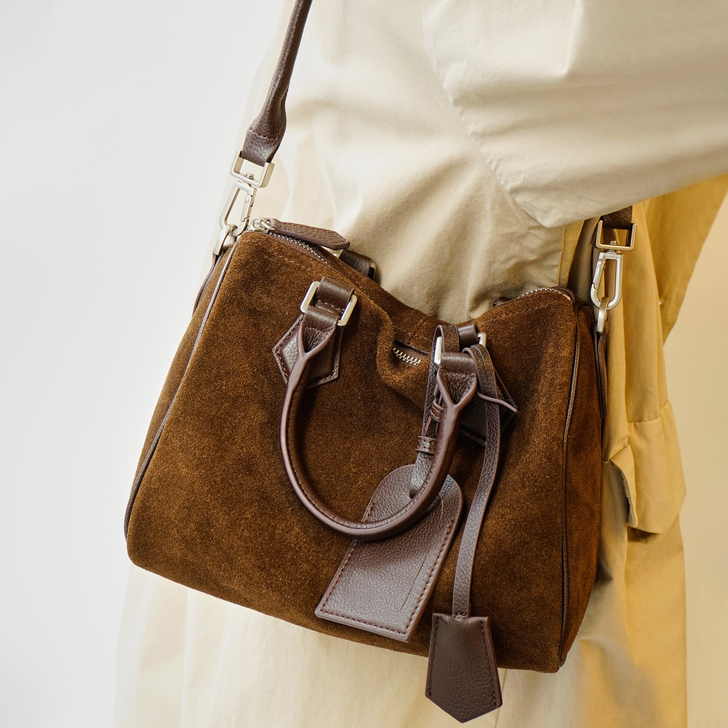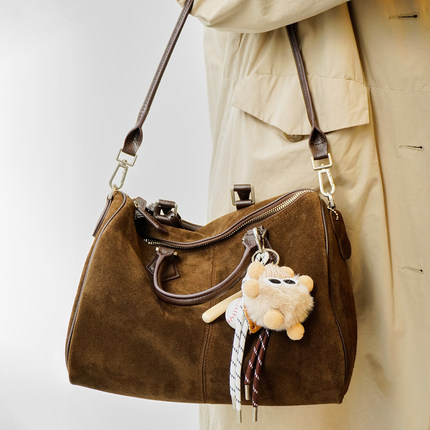 藤也家2026复古休闲磨砂牛皮波士顿枕头包女大容量单肩斜挎通勤包