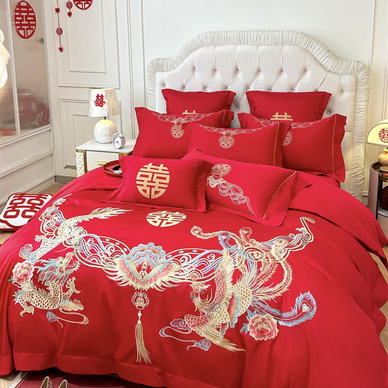 中式龙凤刺绣四结婚四件套大红色新婚房被套床单婚庆床上用品
